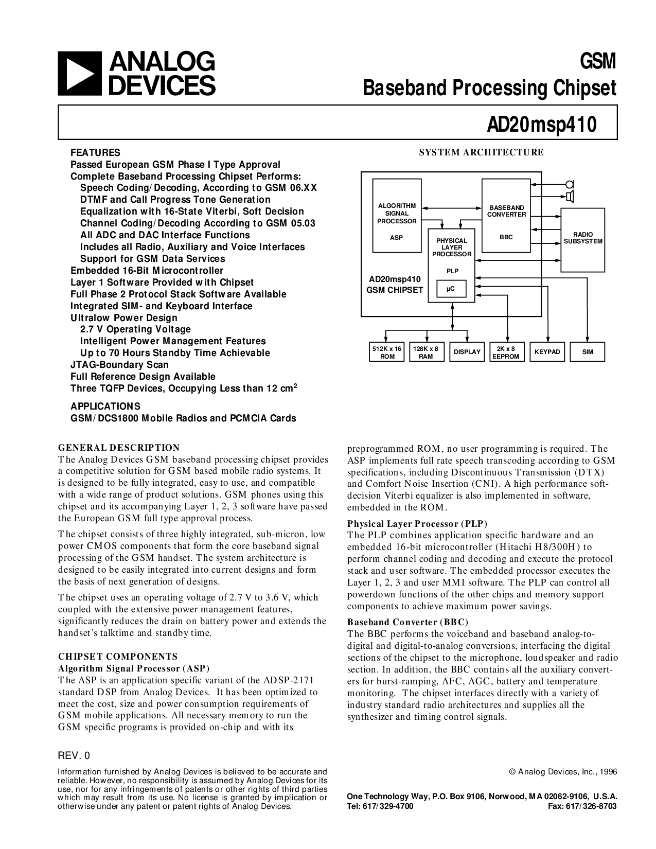 © 模拟 设备, 股份有限公司., 1996