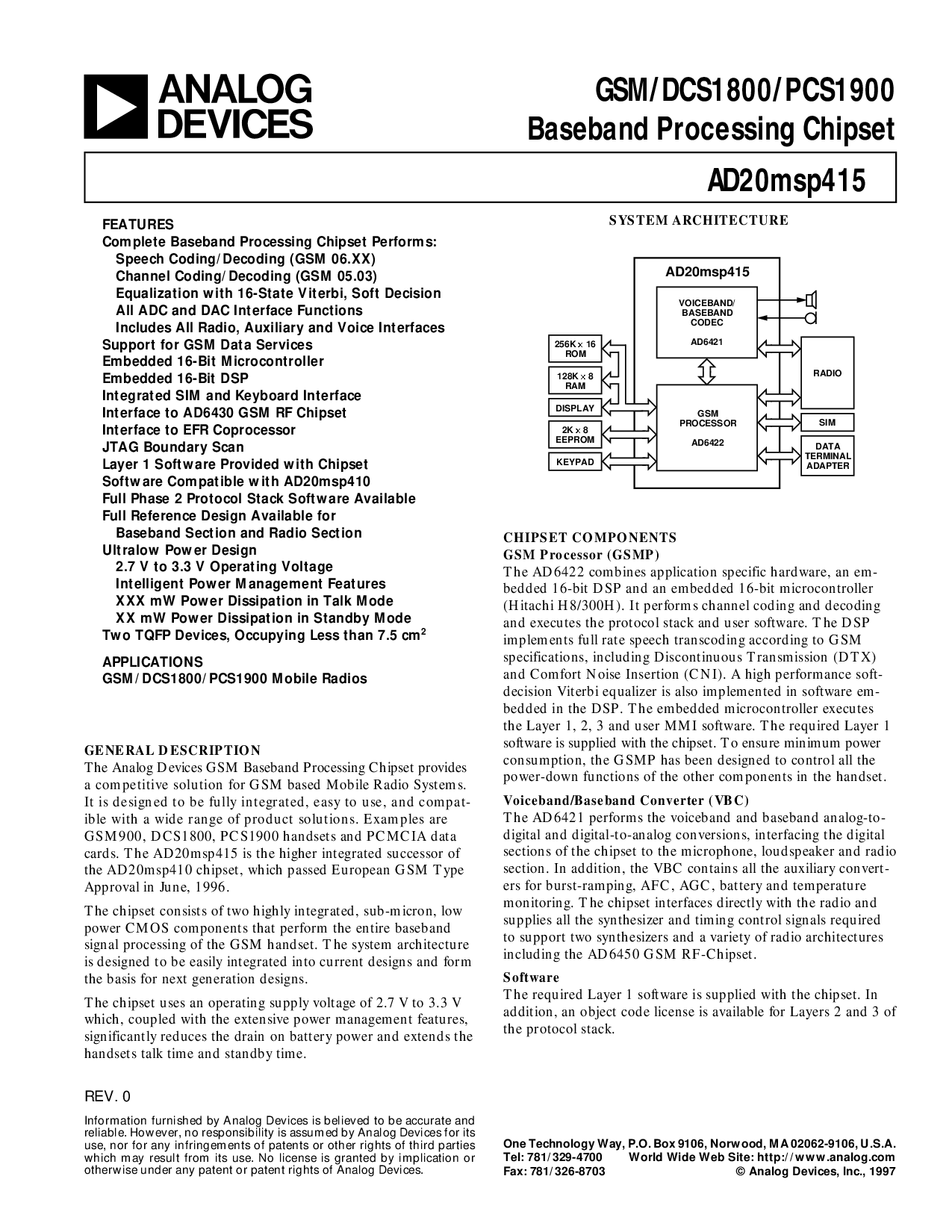 这 模拟 设备 gsm 基带 加工 芯片组 提供