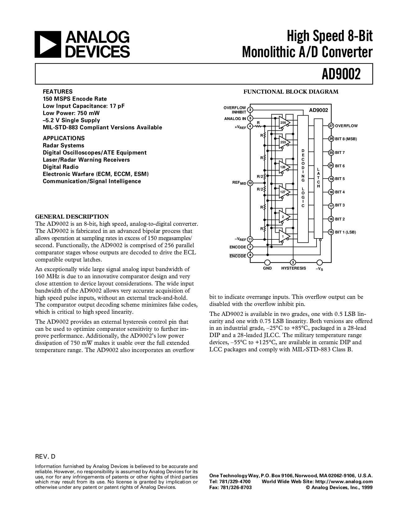浏览型号AD9002SD/883B的Datasheet PDF文件第2页
