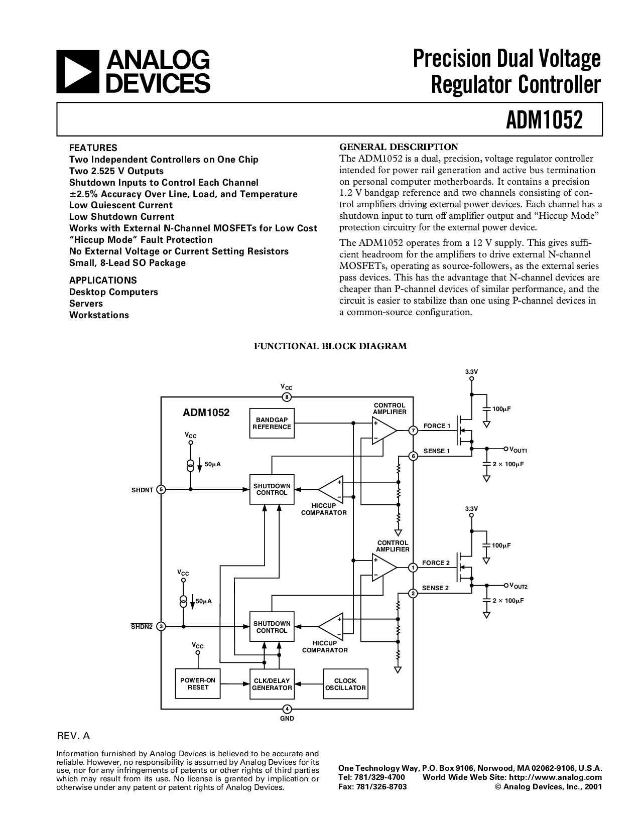 这 adm1052 是 一个 双, 精度, 电压 调节器 控制器