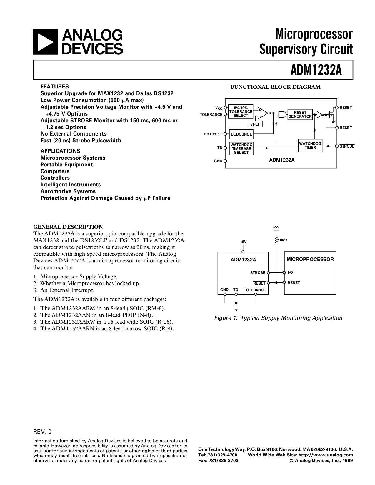 设备 adm1232a 是 一个 microprocessor 监测 电路
