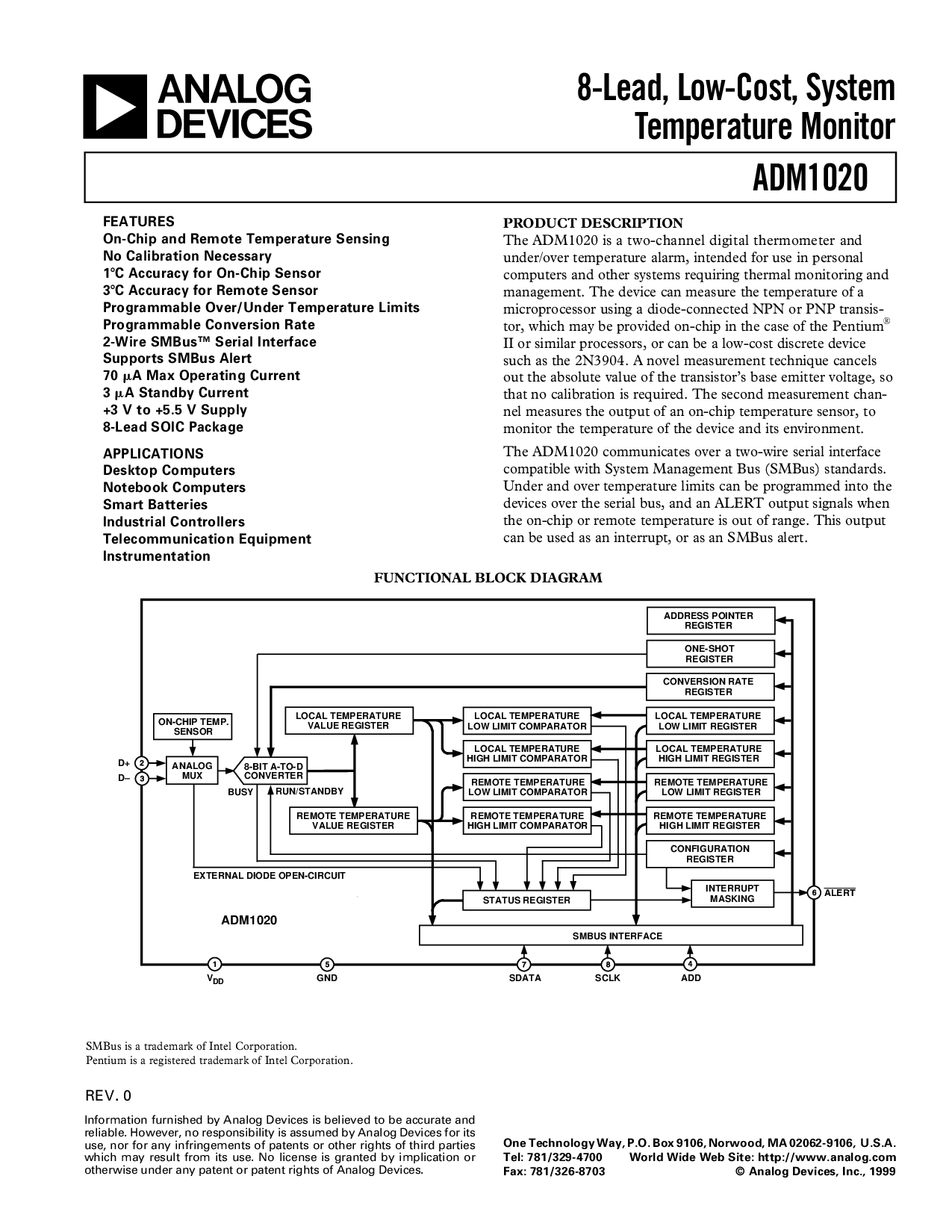 这 adm1020 通信 结束 一个 双线 串行 接口