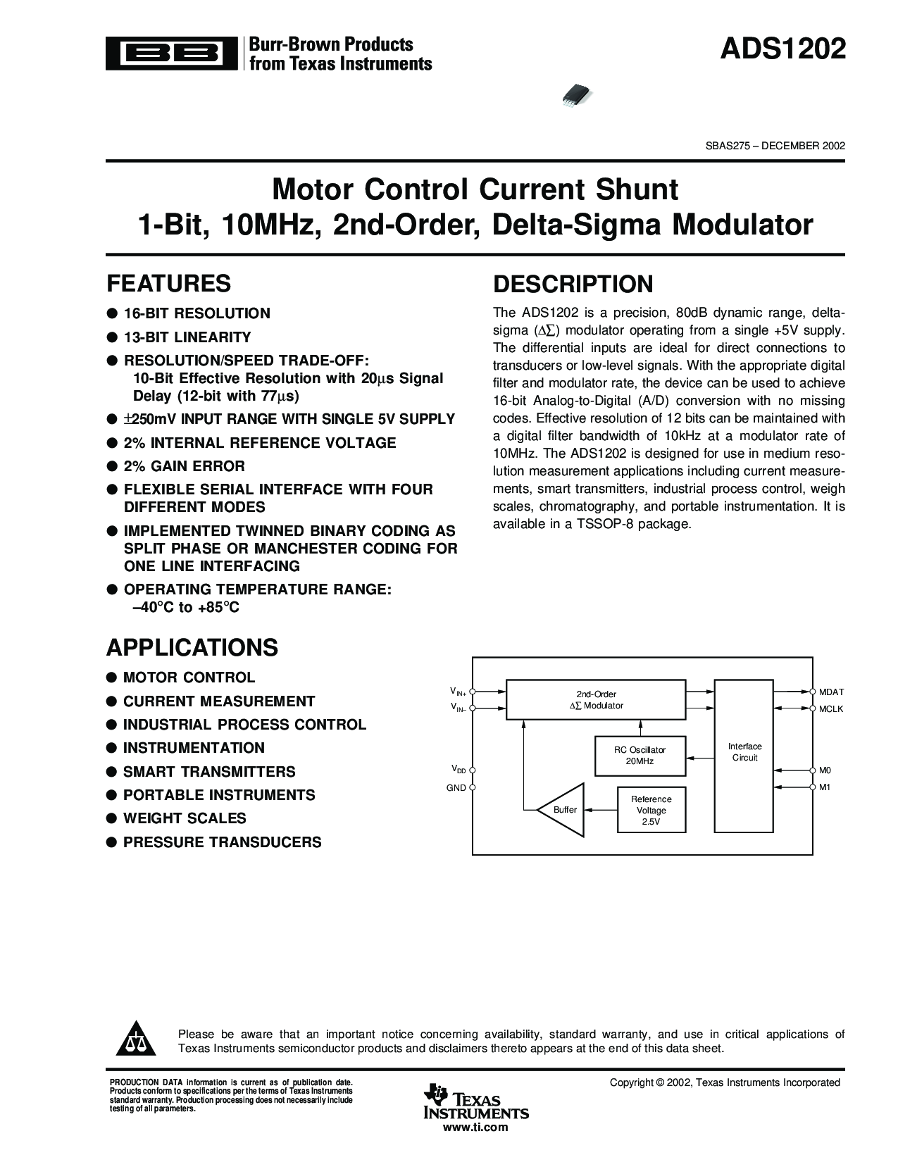 浏览型号ADS1202I的Datasheet PDF文件第2页