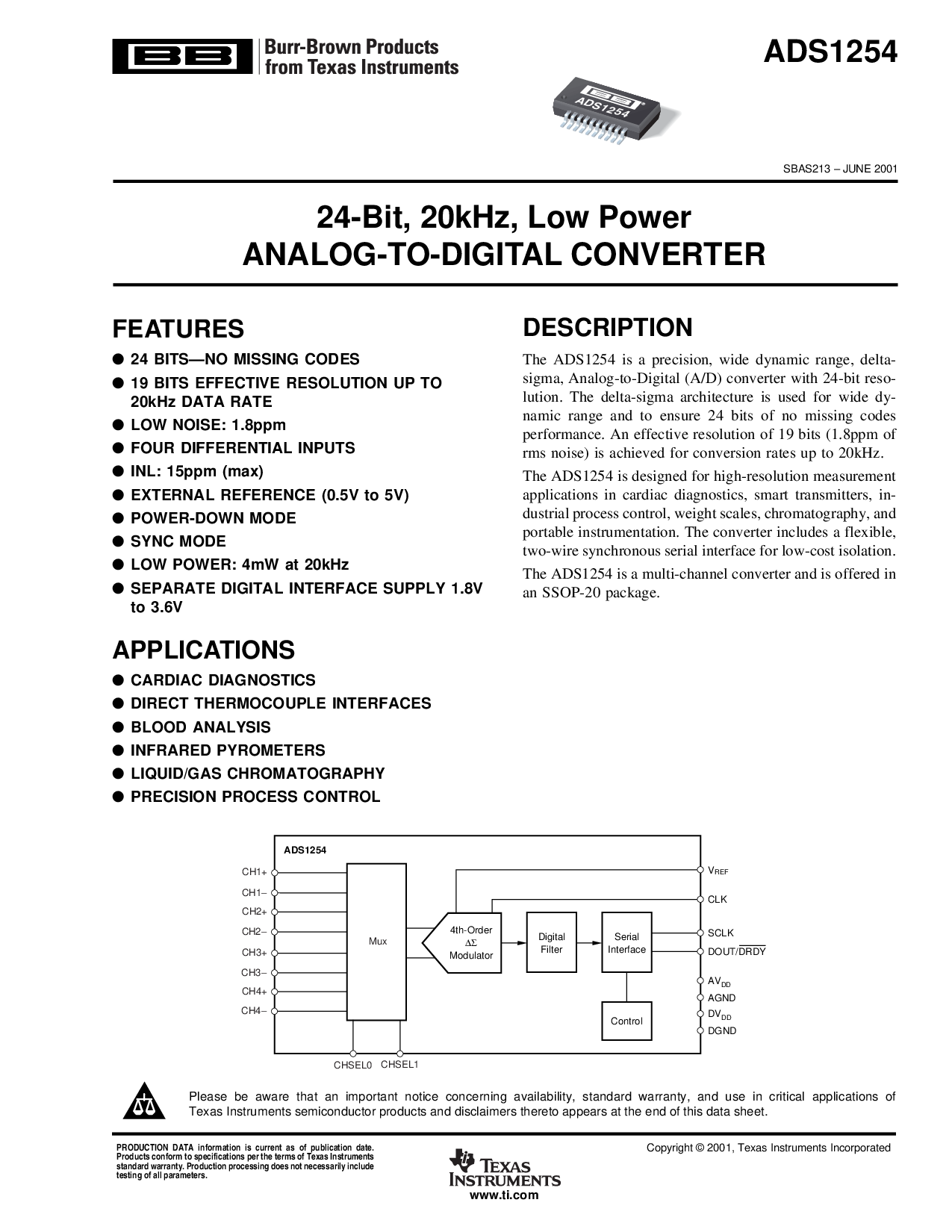 这 ads1254 是 一个 多通道 变频器 和 是 提供 入点