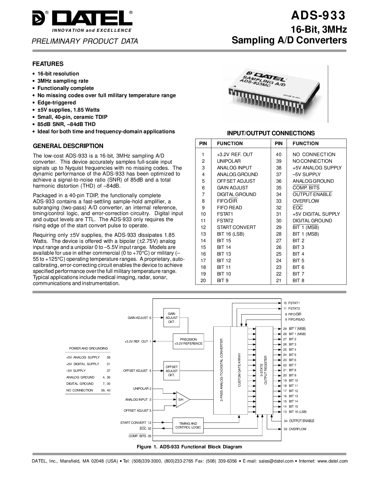 要求 仅 ±5v 供应品, 这 广告-933 消散 1.85