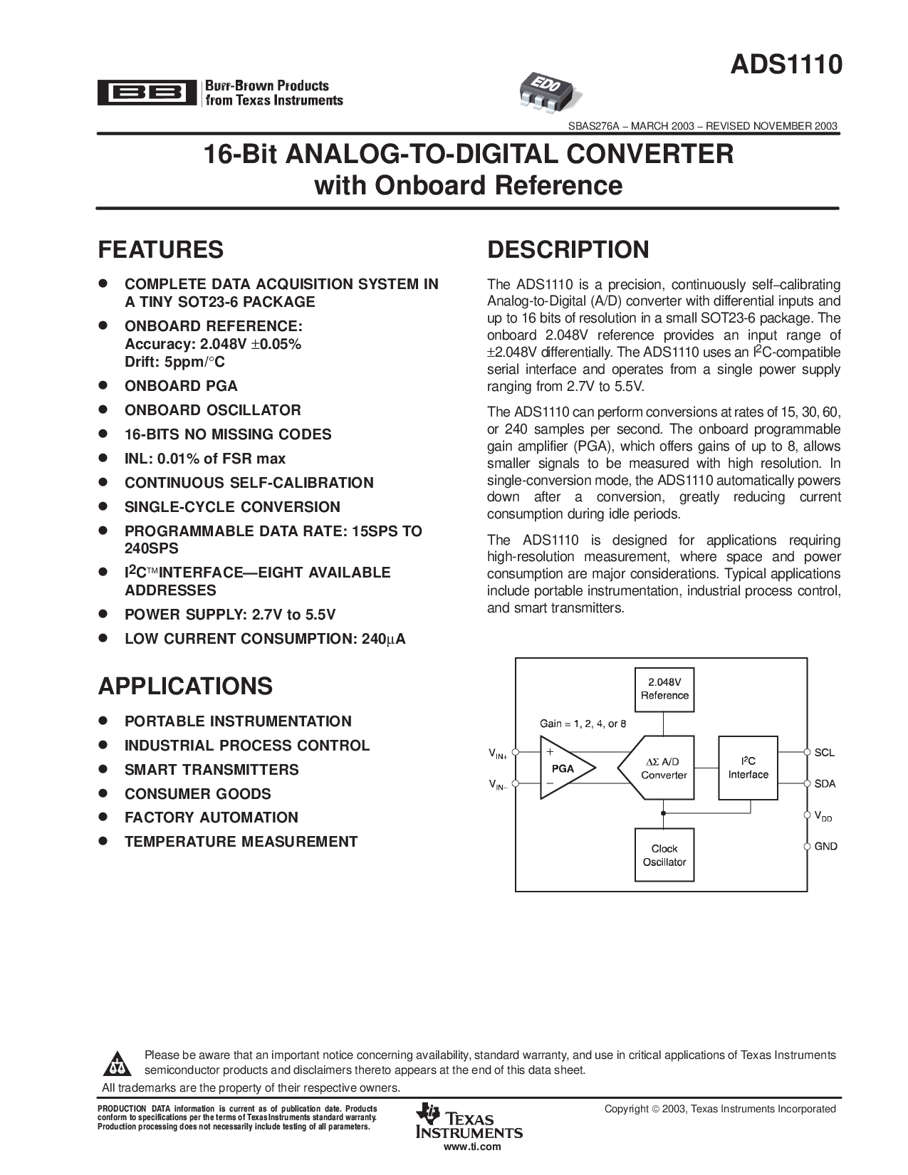 这 ads1110 是 一个 精度, 连续 self−calibrating