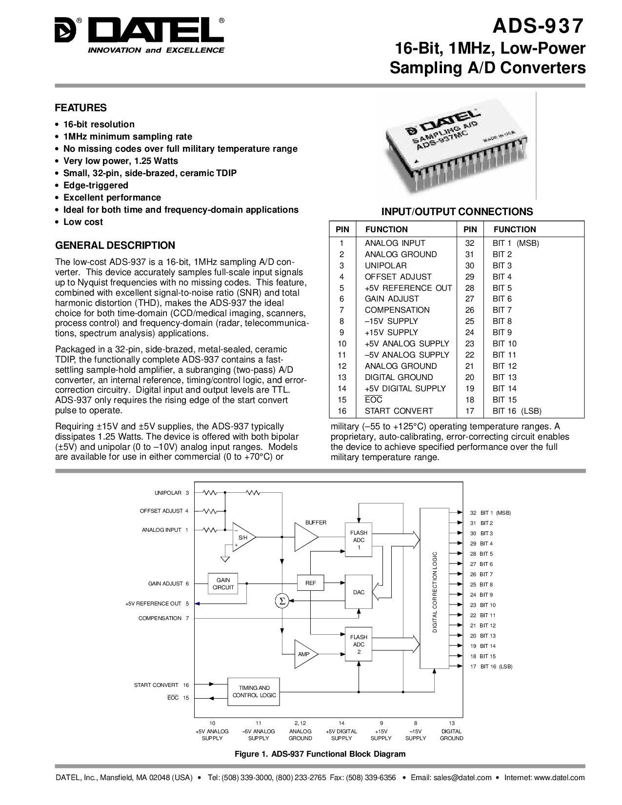 这 低成本 广告-937 是 一个 16-有点, 1mhz 取样 一个/d con-
