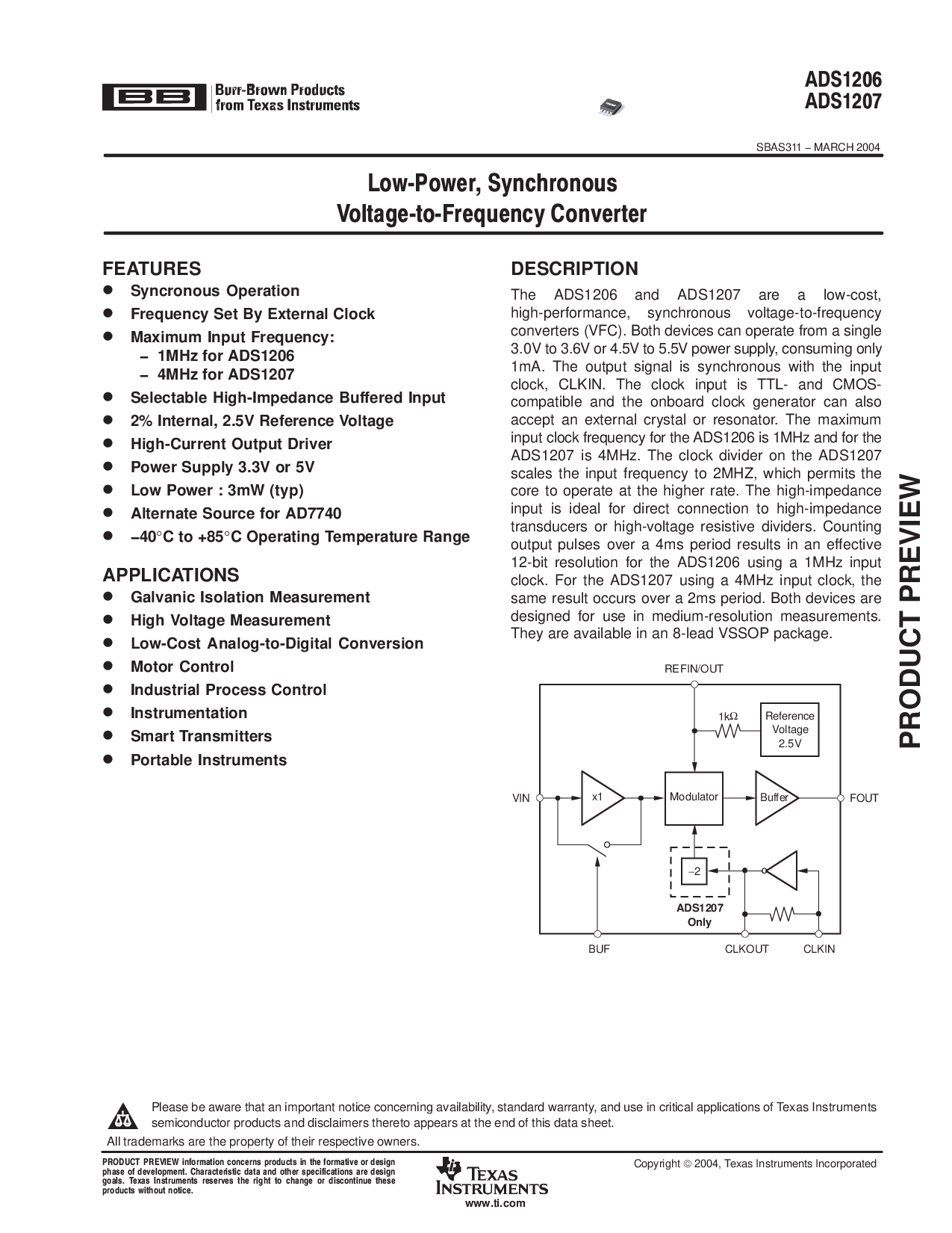 这 ads1206 和 ads1207 是 一个 低-成本,