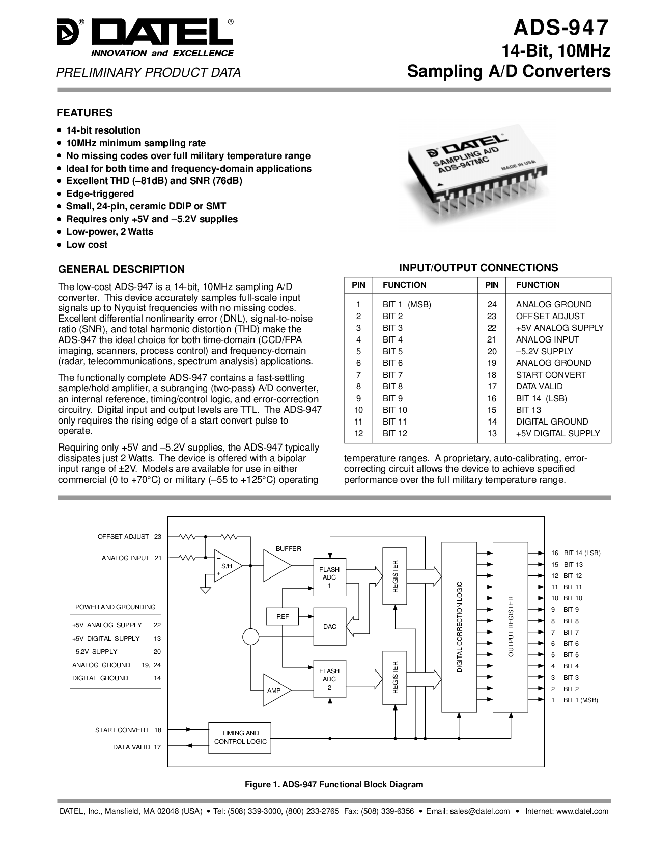 要求 仅 +5v 和 –5.2v 供应品, 这 广告-947 通常