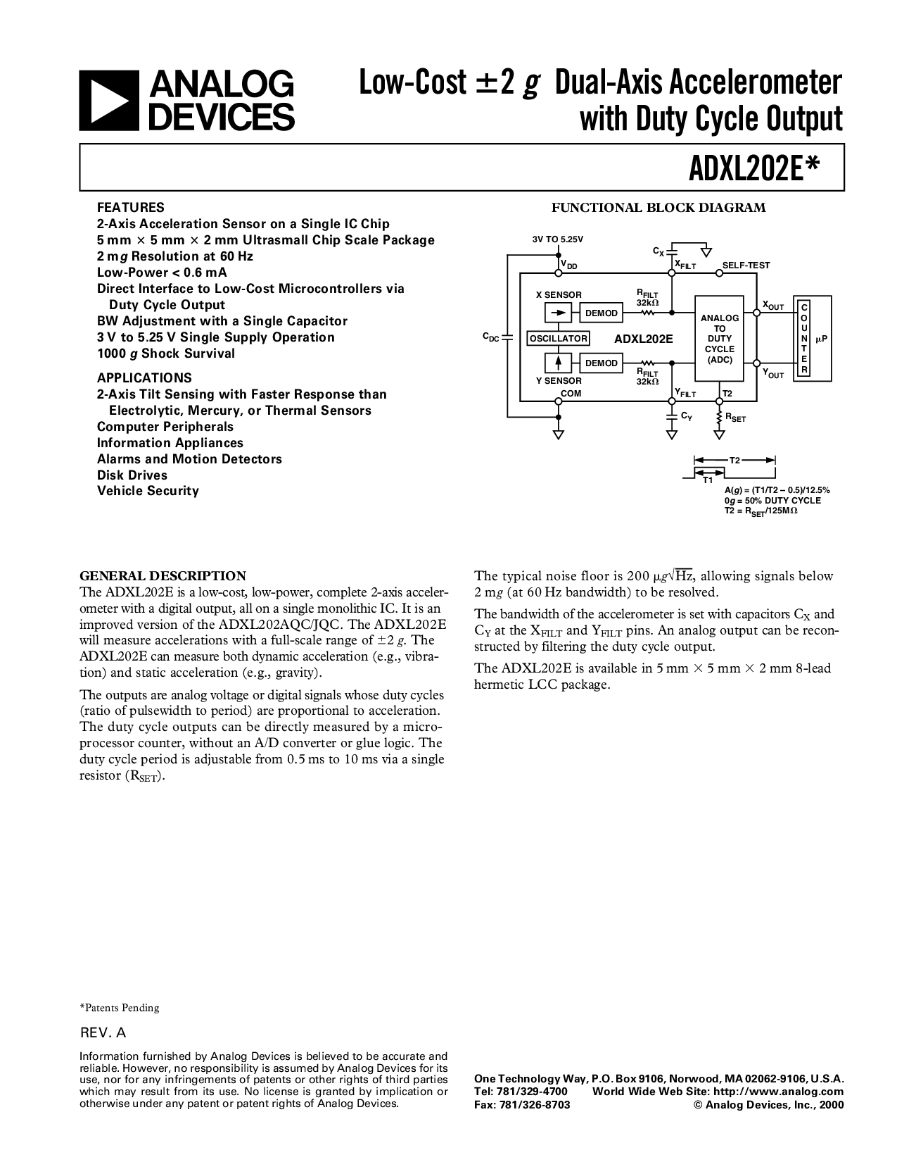 这 adxl202e 是 一个 低-成本, 低-电源, 完成 2-轴 acceler-