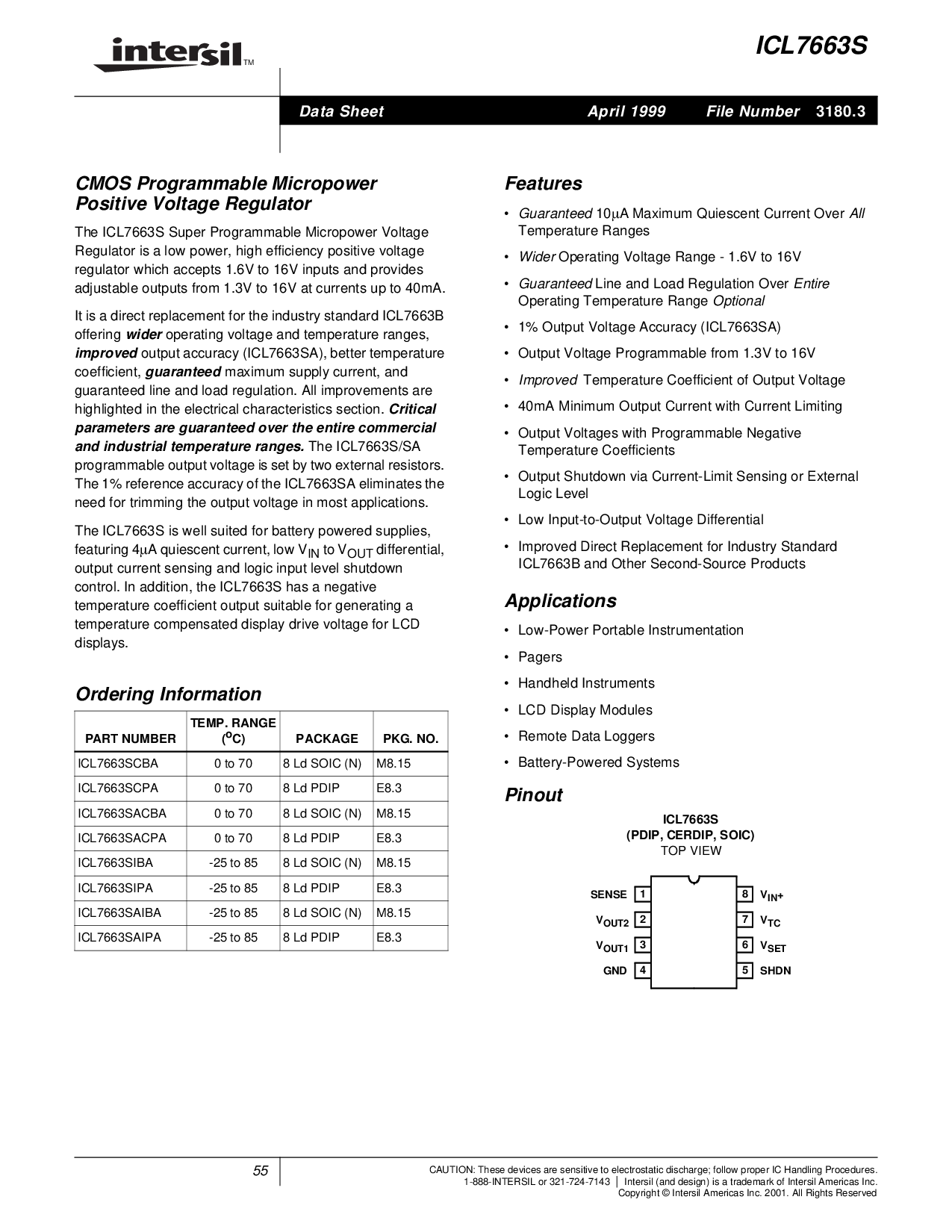 版权 © intersil 美洲 公司 2001. 全部 权利 保留