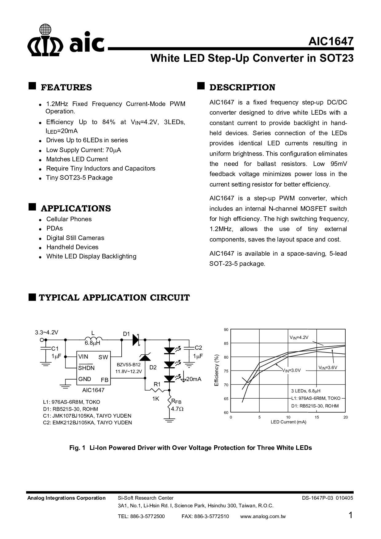 aic1647 是 一个 固定 频率 升压 直流/直流