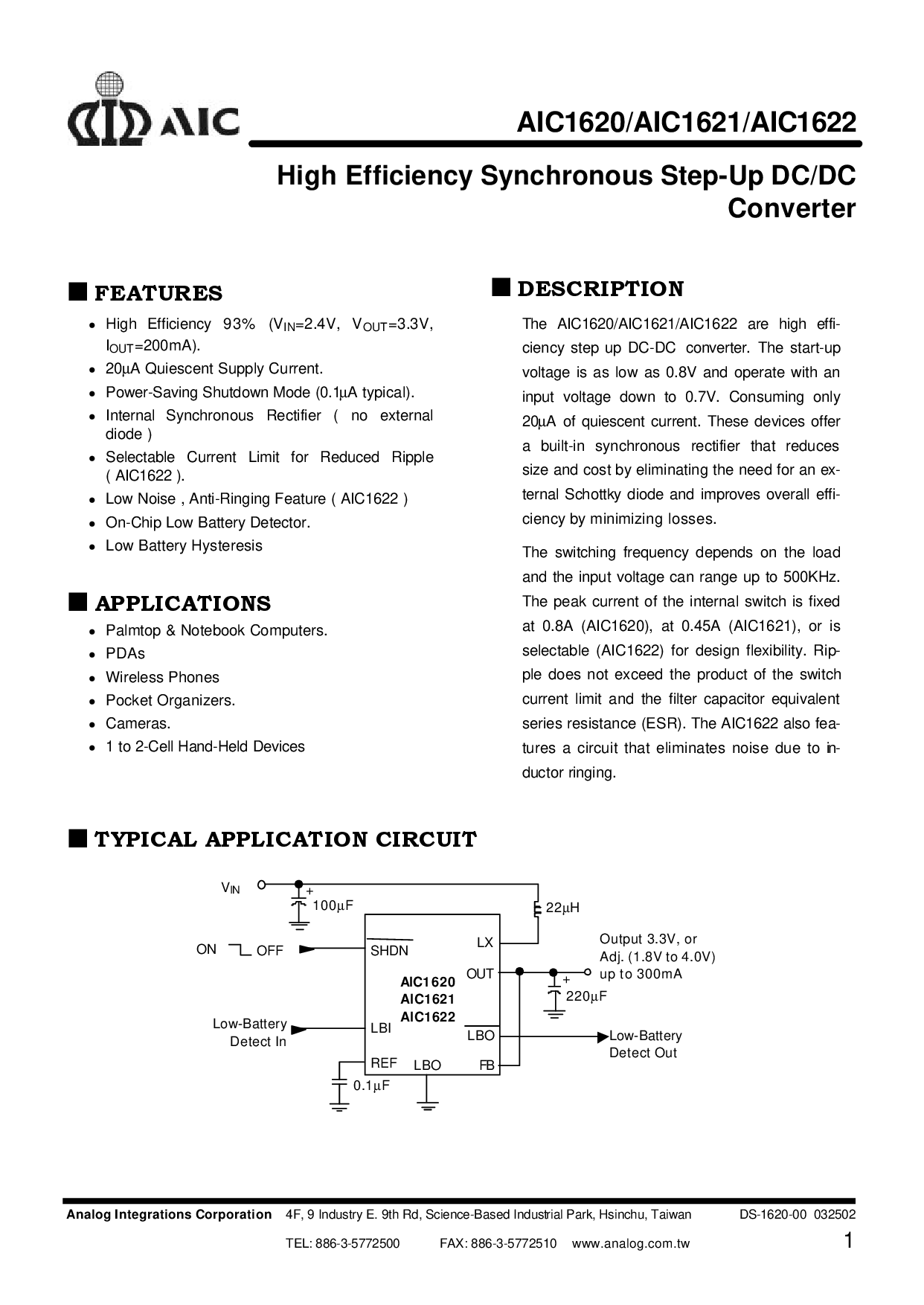 在 0.8a (aic1620), 在 0.45a (aic1621), 或 是
