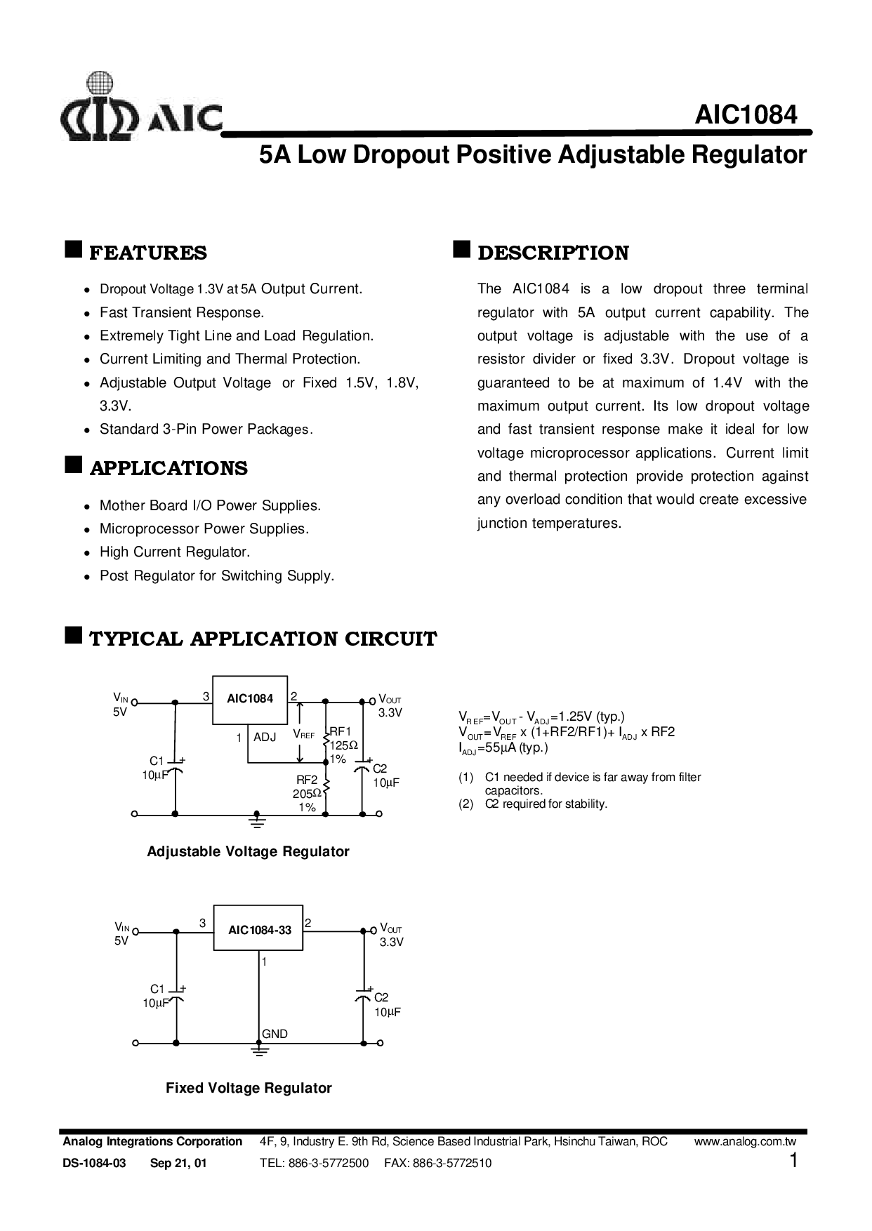 浏览型号AIC1084-CMA的Datasheet PDF文件第2页