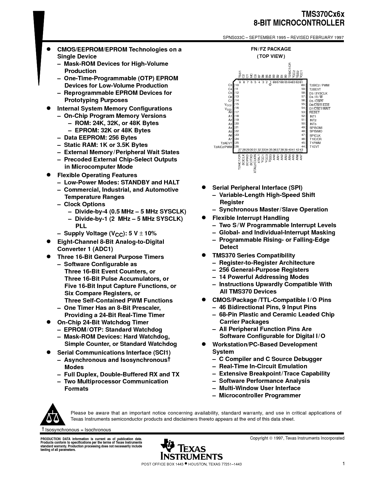 浏览型号TMS370CX6X的Datasheet PDF文件第2页