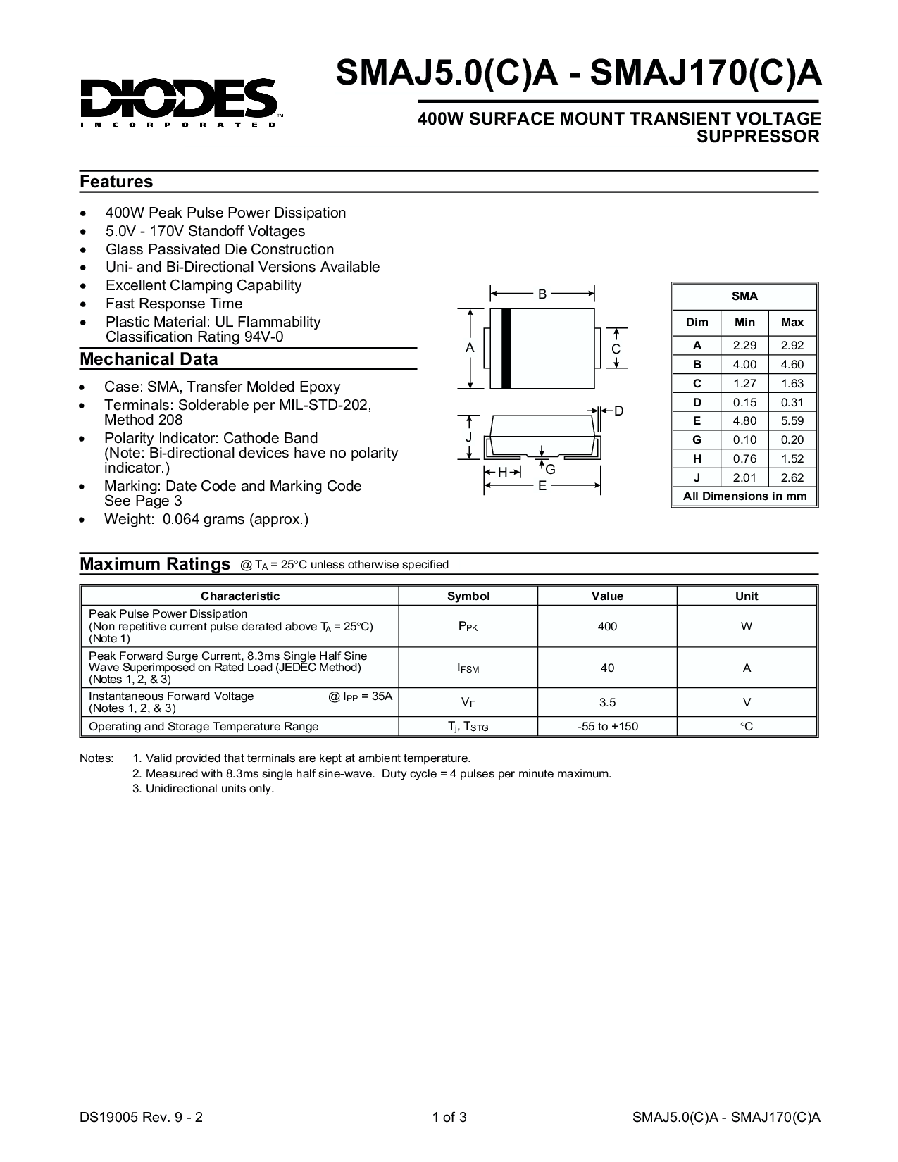 ds19005 rev. 9 - 2 1 的 3 smaj5.0(c)一个 - smaj170(c)一个