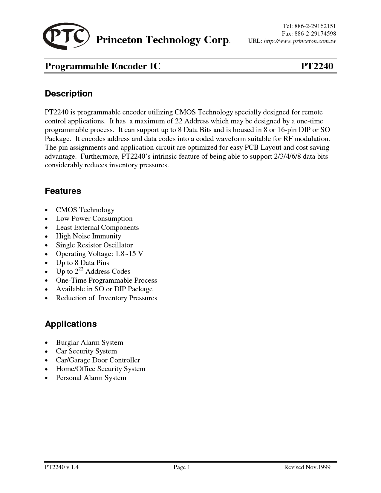 pt2240 v 1.4 第页 1 修订 十一月.1999