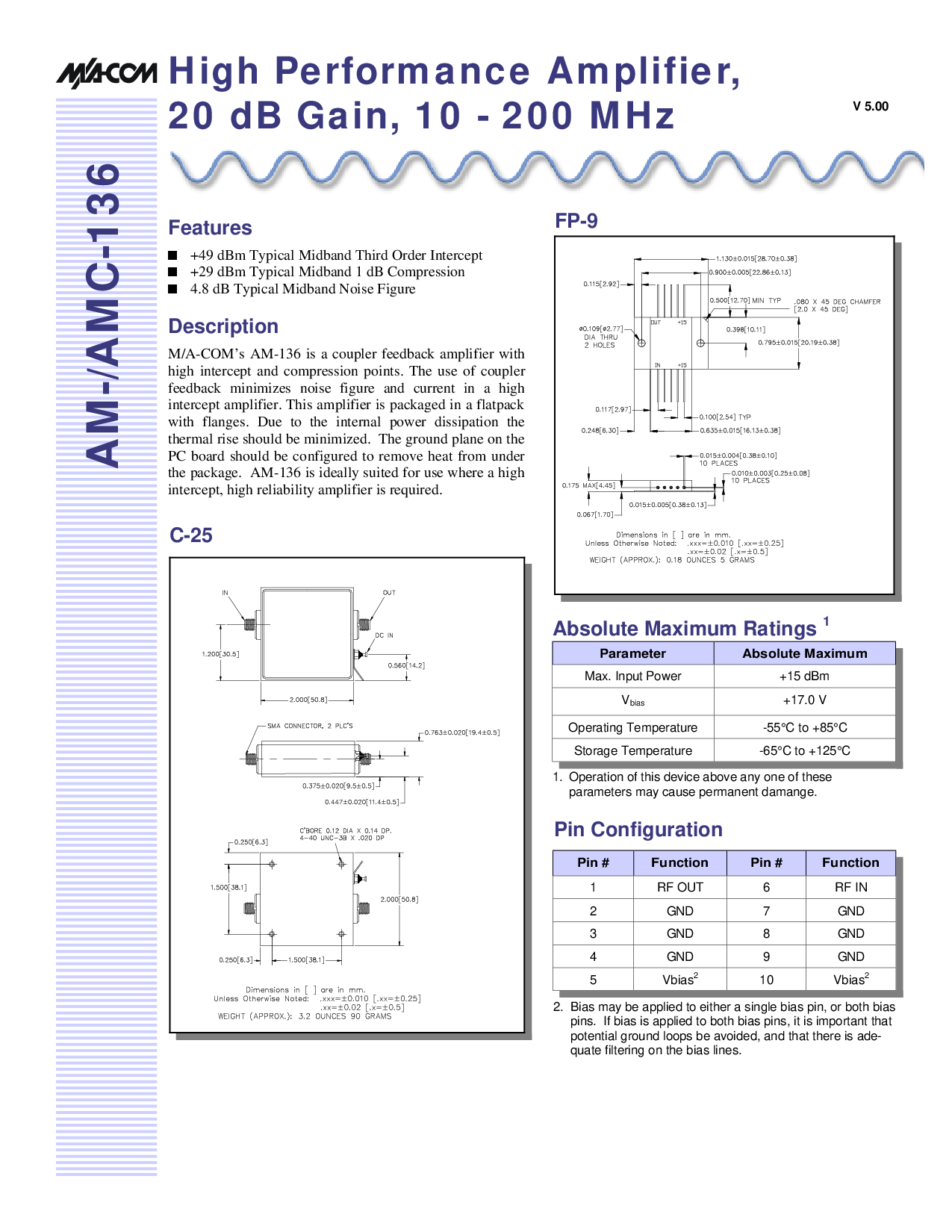 m/一个-com’s 上午-136 是 一个 耦合器 反馈 放大器 与