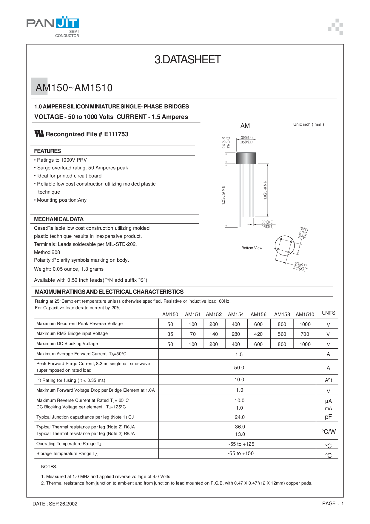 电压 - 50 至 1000 伏特 电流 - 1.5 安培