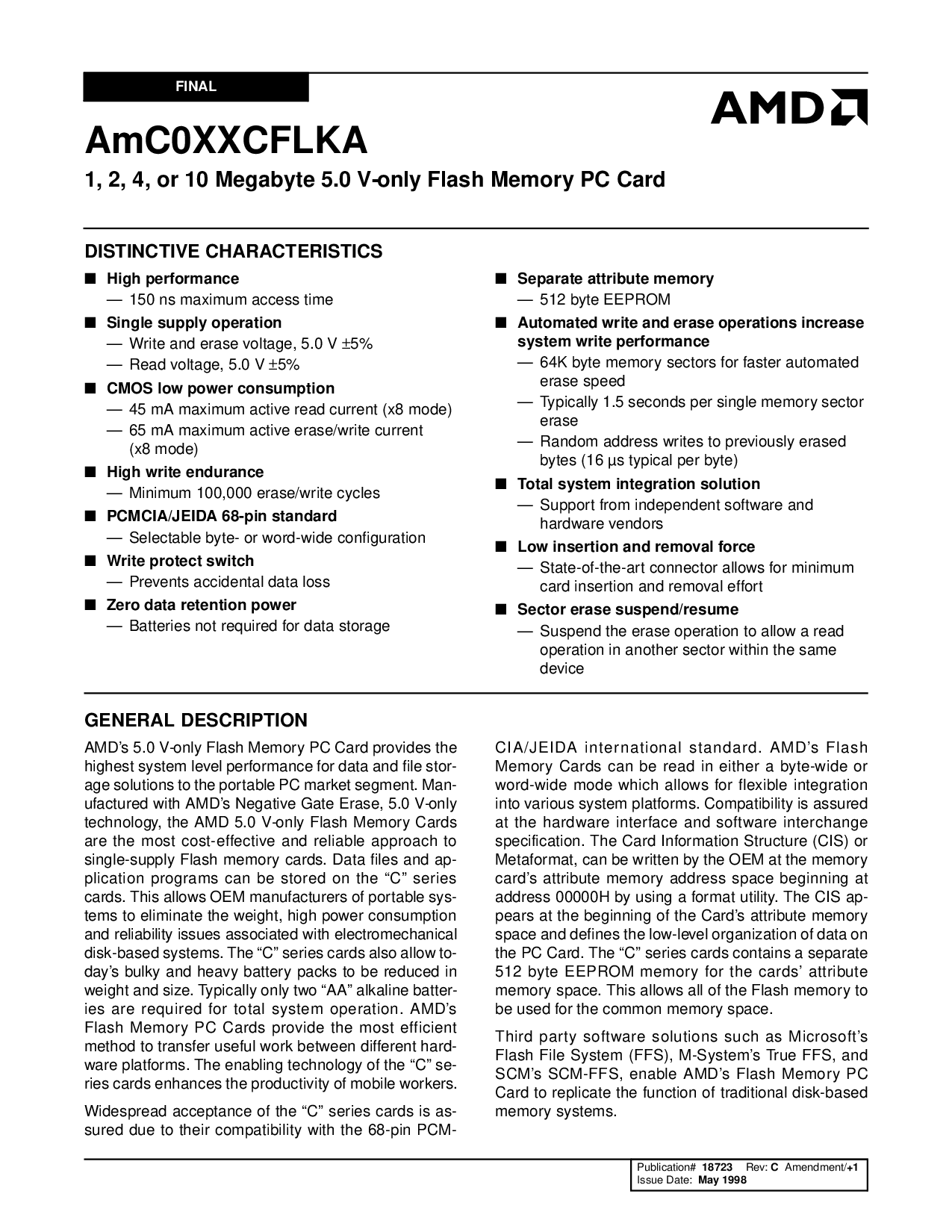 amd’s 5.0 v-仅 闪光灯 记忆 pc 卡片 提供 这