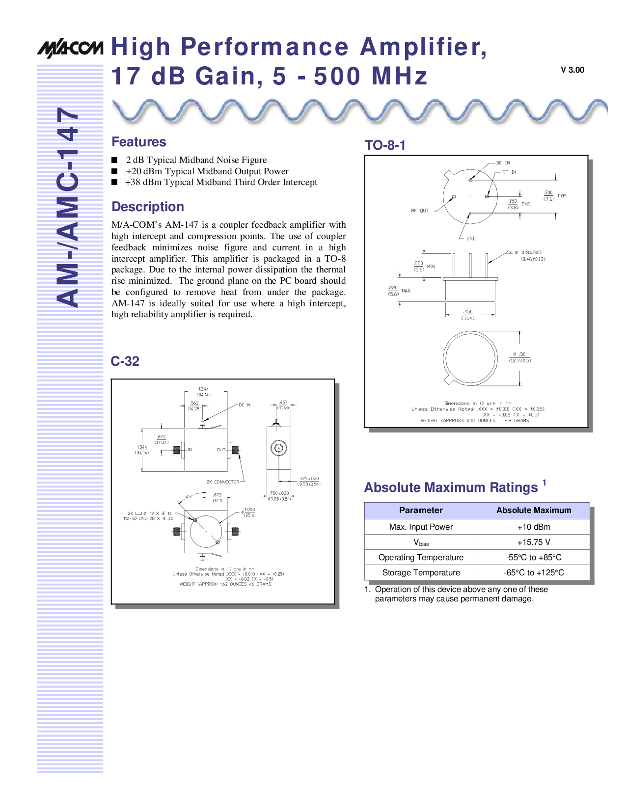m/一个-com’s 上午-147 是 一个 耦合器 反馈 放大器 与