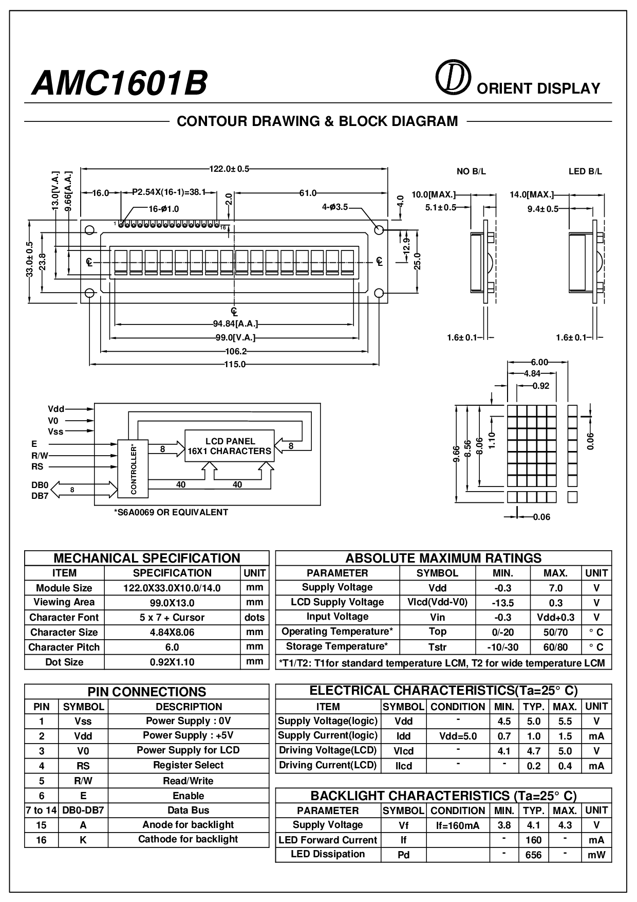 16x1 字符
