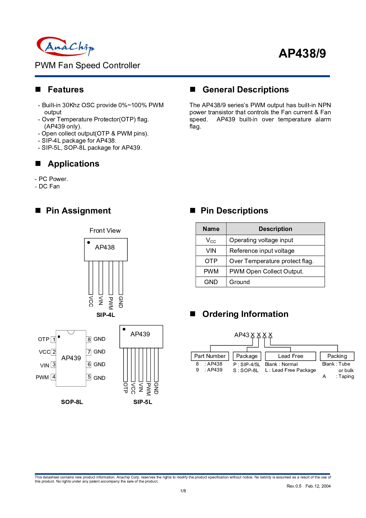 这个 数据表 包含 新建 产品 信息. anachip corp. reserves 这 权利 至 修改 这 产品 规格 无通知. 否 责任 是 假设 作为 一个 结果 的 这 使用 的