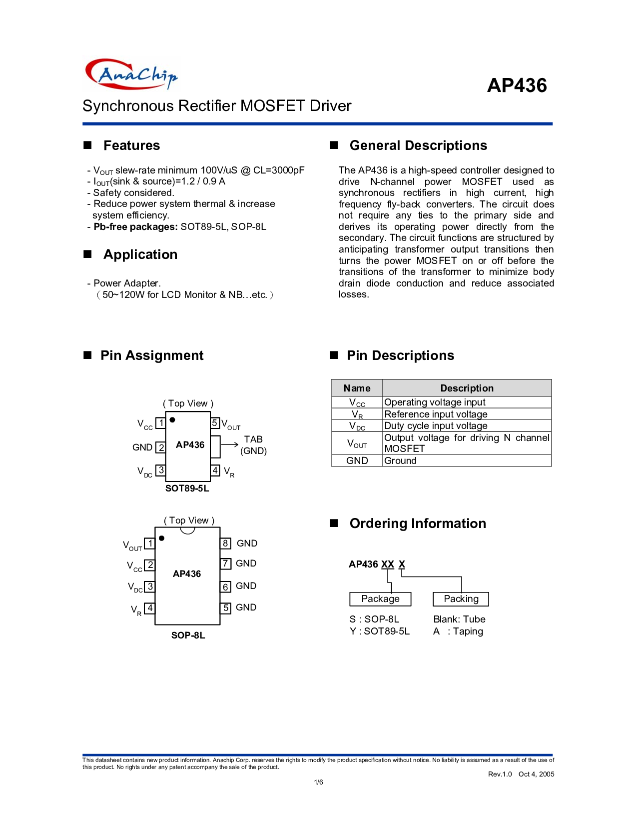这个 数据表 包含 新建 产品 信息. anachip corp. 储备金 这 权利 至 修改 这 产品 规格 无通知. 否 责任 是 假设 作为 一个 结果 的 这 使用 的