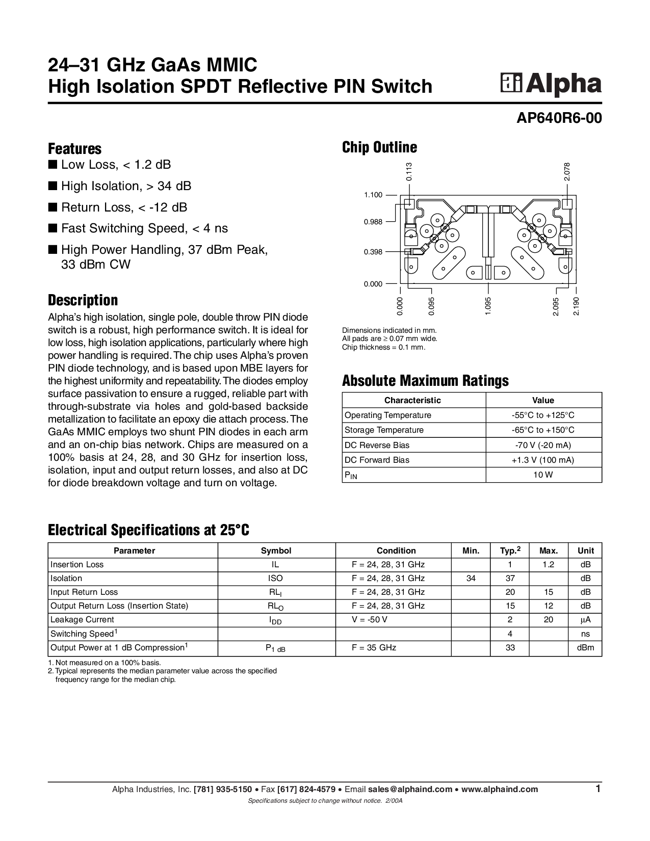 阿尔法’s 高 隔离, 单独 杆, 双 投掷 管脚 二极管