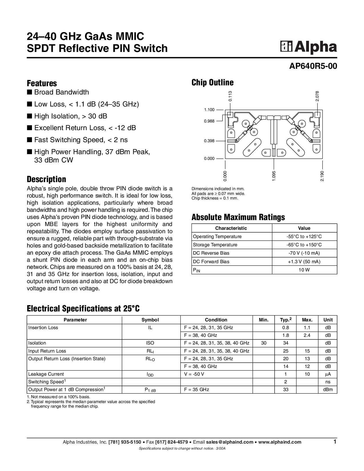 插入 损失 il f = 24, 28, 31, 35 ghz 0.8 1.1 db