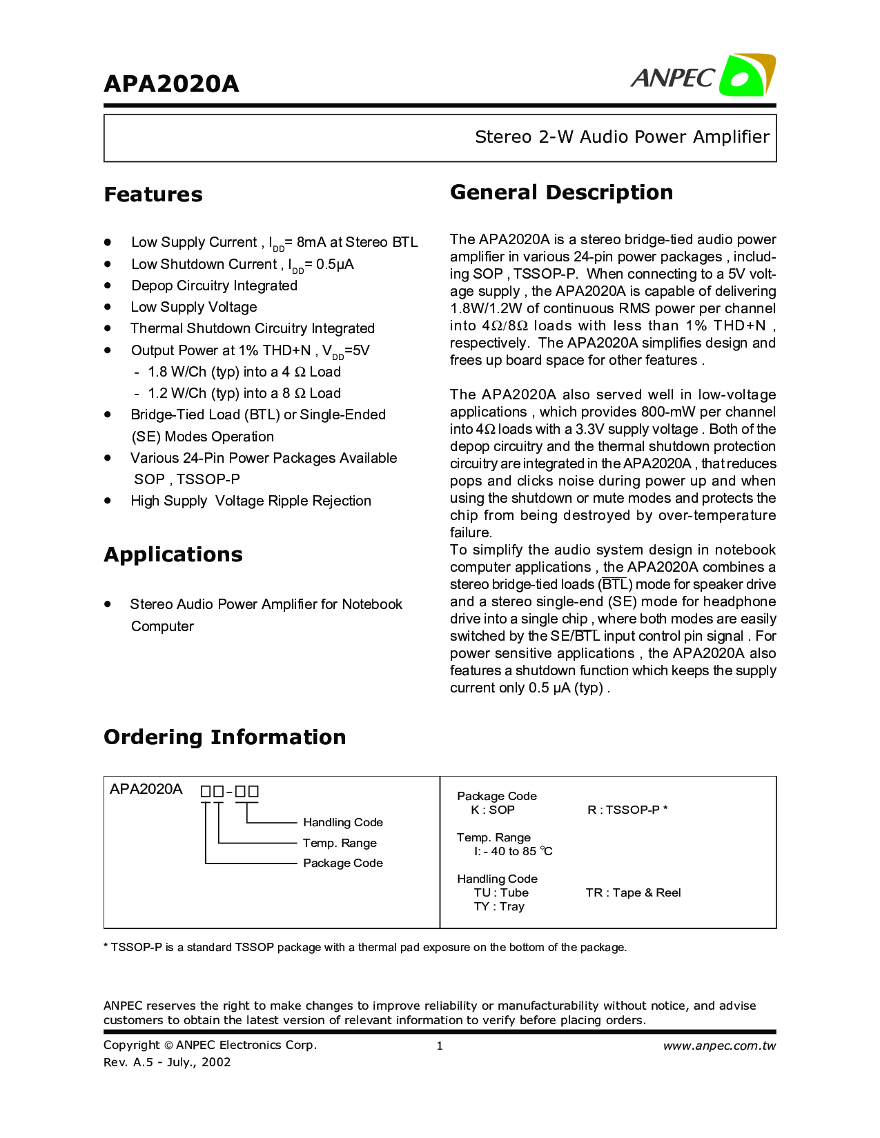 浏览型号APA2020AKI-TR的Datasheet PDF文件第2页