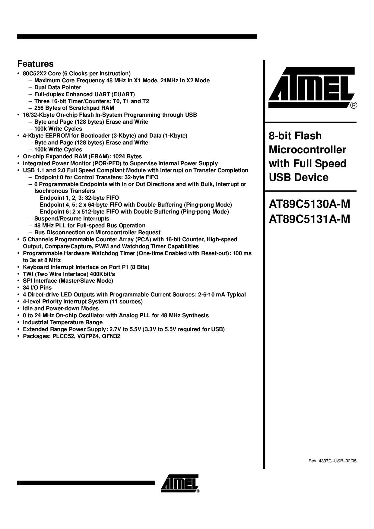 16/32-kbyte 片上 闪光灯 在系统内 编程 通过 usb