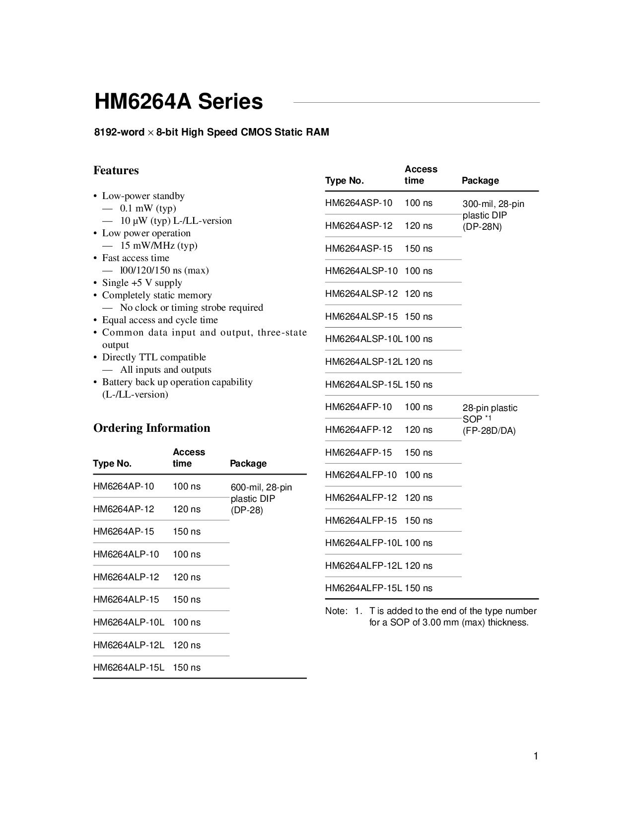 浏览型号HM6264ASP-10T的Datasheet PDF文件第2页