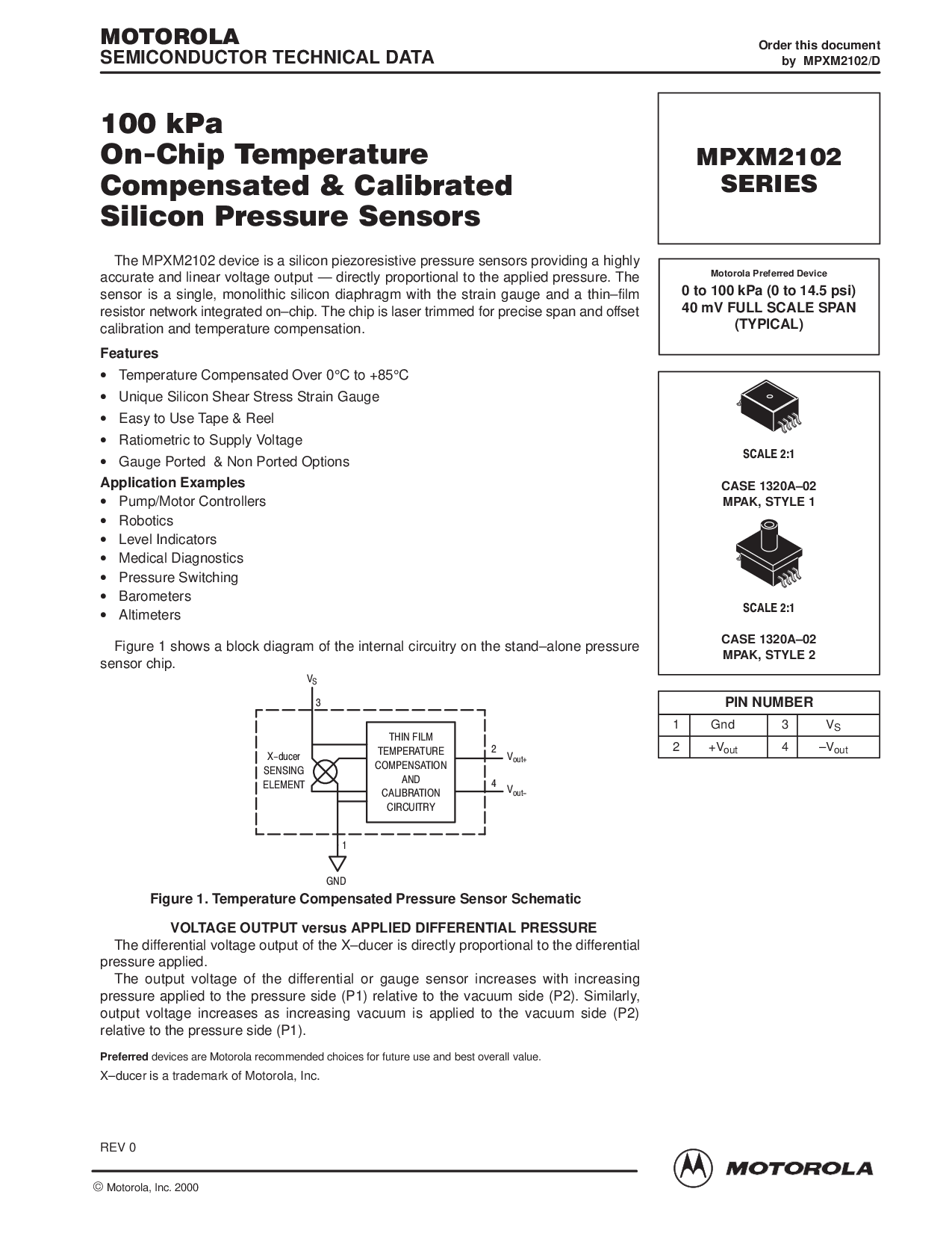这 mpxm2102 设备 是 一个 硅 piezoresistive 压力 传感器 提供 一个 高度