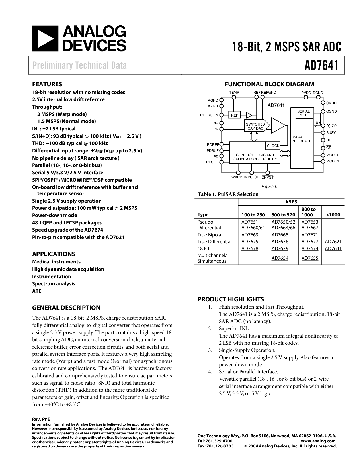 这 ad7641 是 一个 2 msps, 费用 再分配, 18-有点