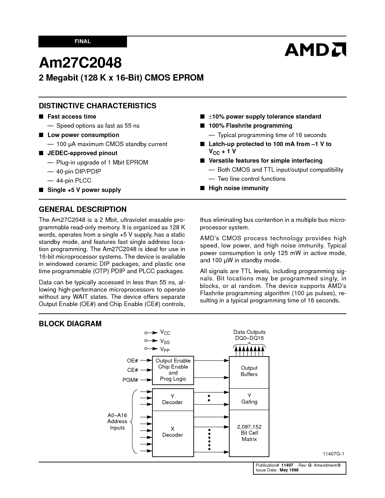 这 am27c2048 是 一个 2 mbit, 紫外线 可擦除 专业版-