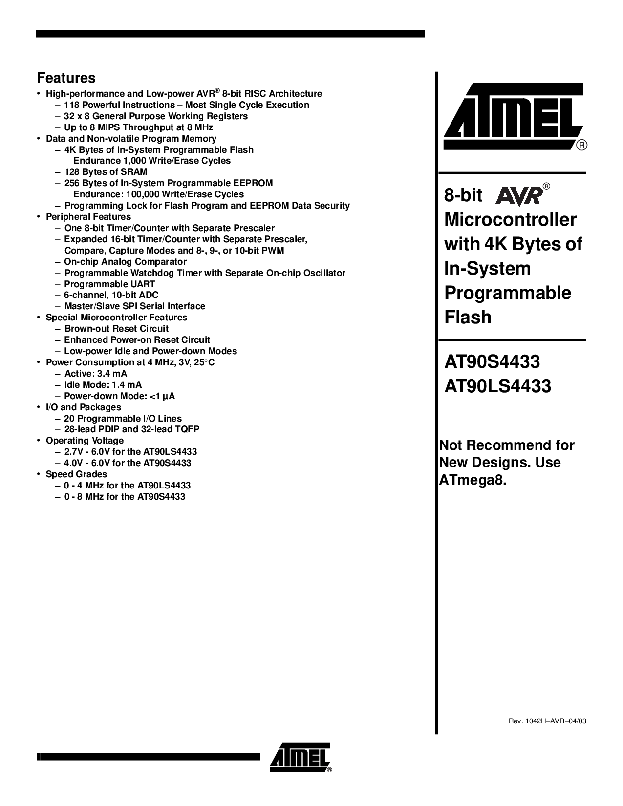 浏览型号AT90S4433-8PI的Datasheet PDF文件第4页