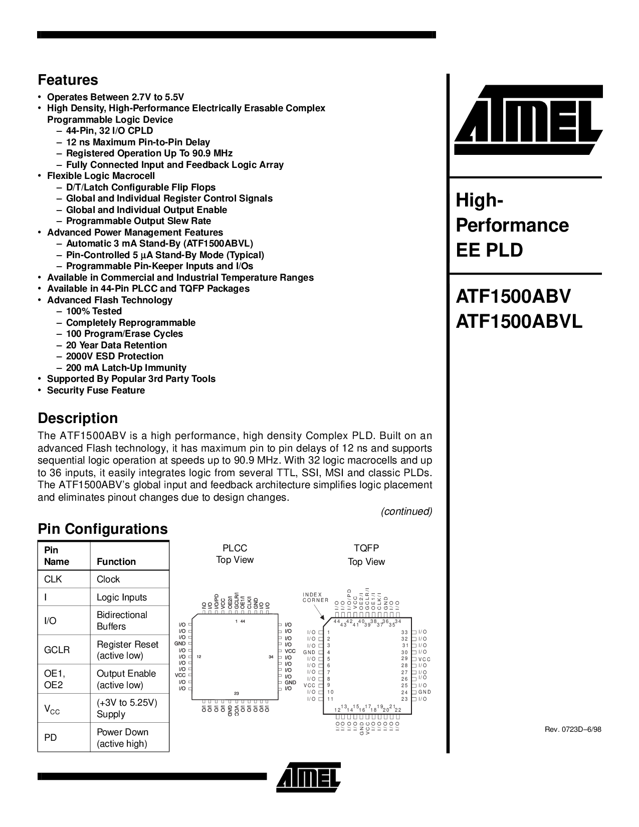 这 atf1500abv 是 一个 高 业绩, 高 密度 复杂 pld. 已建成 开启 一个