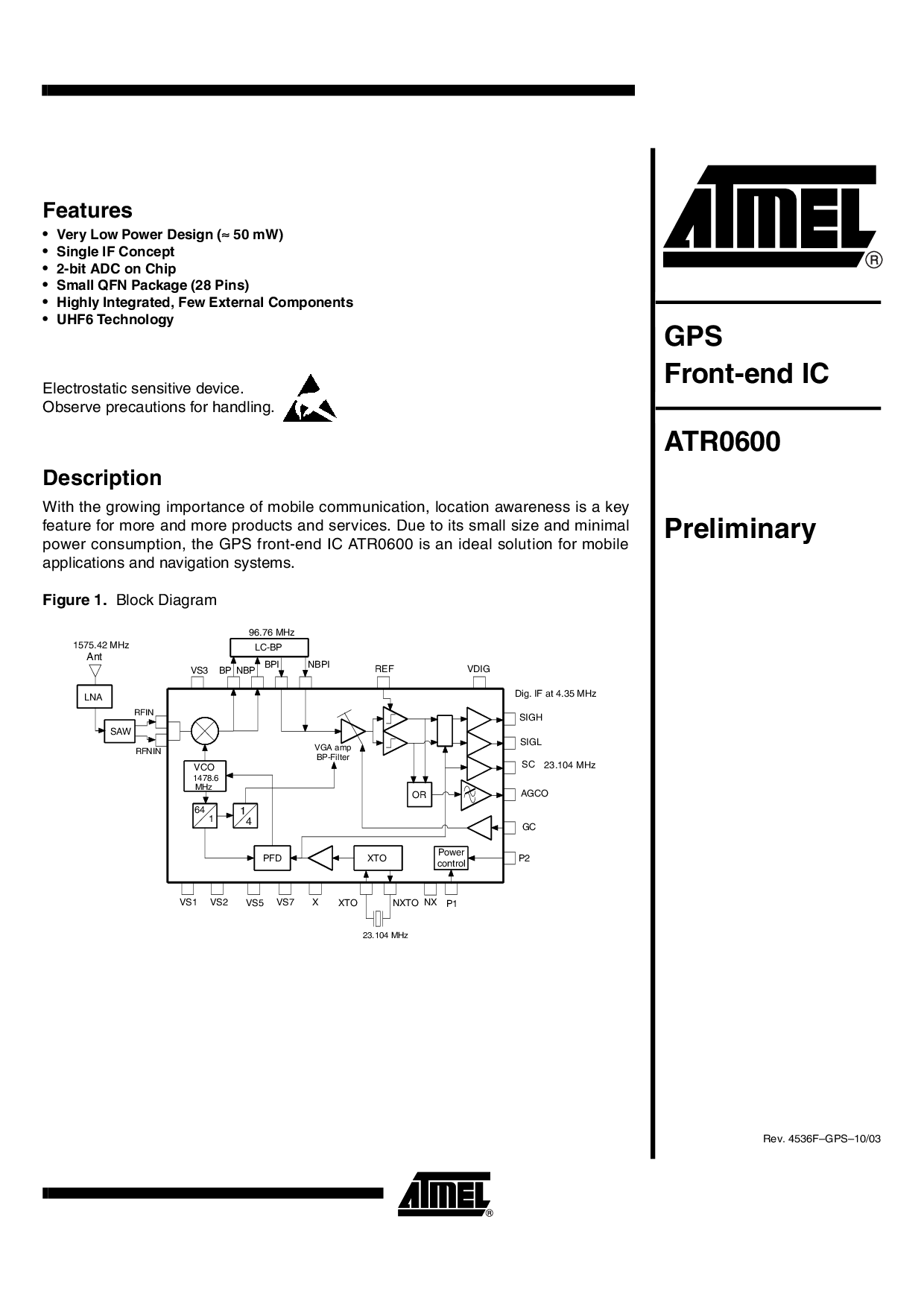 电源 消费, 这 gps 前端 集成电路 atr0600 是 一个 理想 解决方案 用于 移动电话