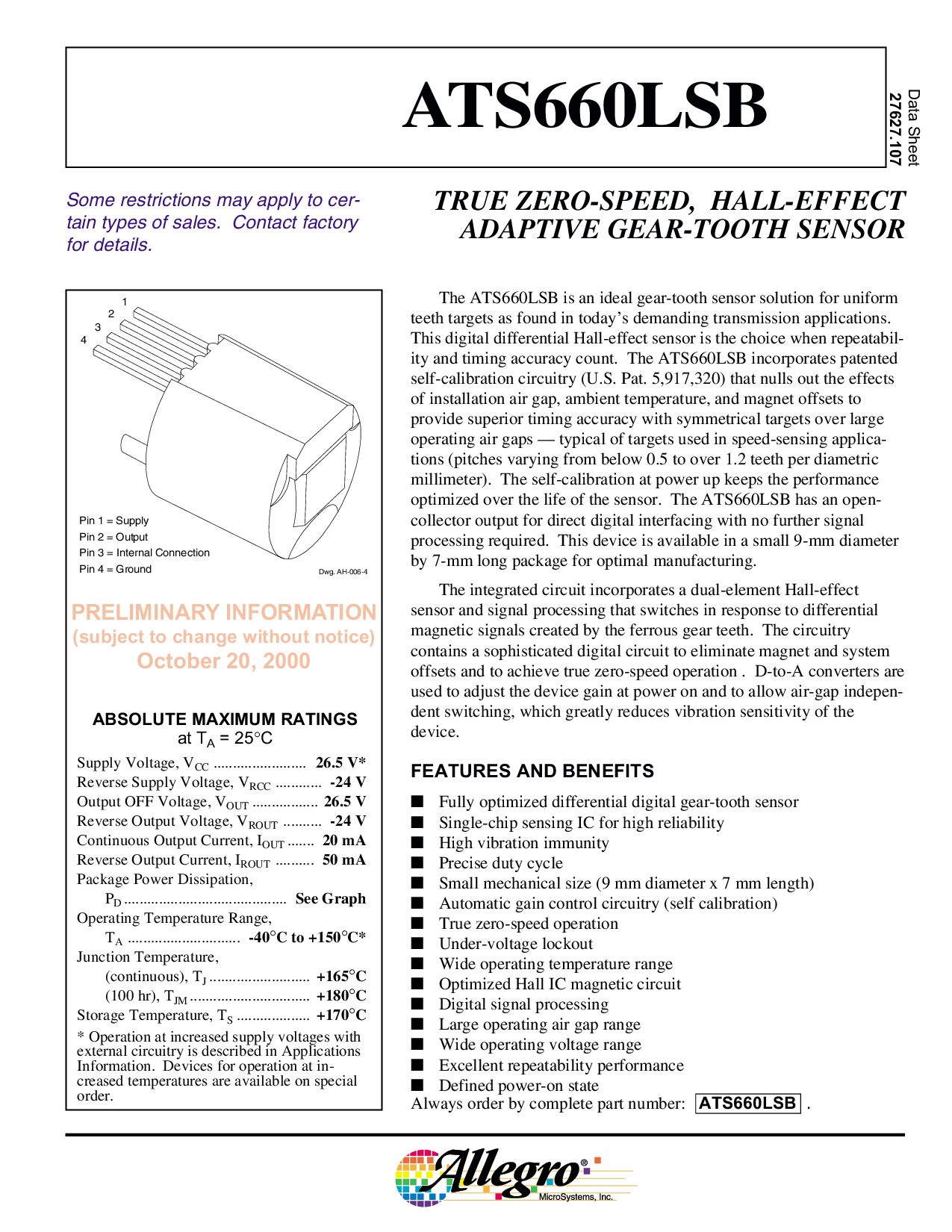 这 ats660lsb 是 一个 理想 齿轮-齿 传感器 解决方案 用于 制服