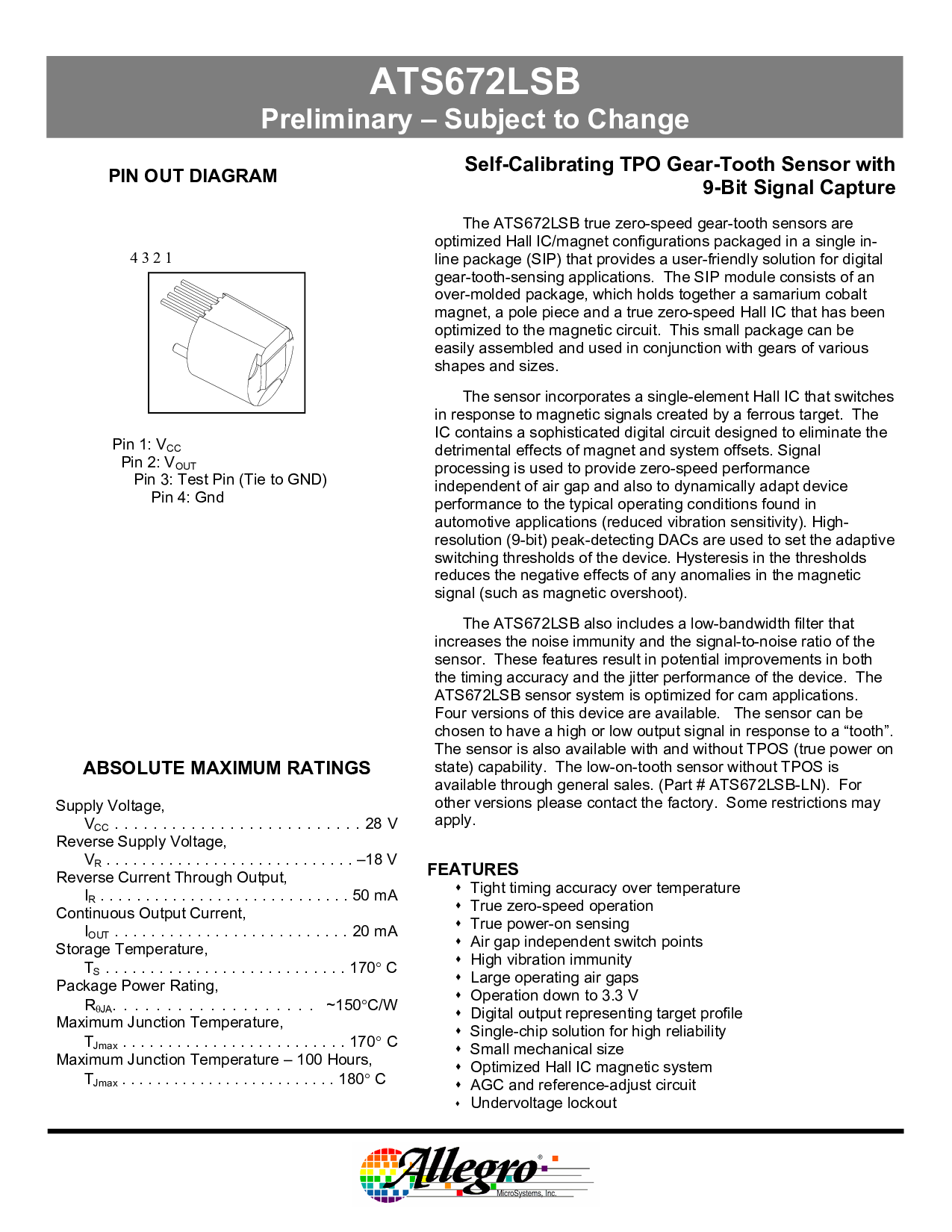 这 ats672lsb 真 零-速度 齿轮-齿 传感器 是