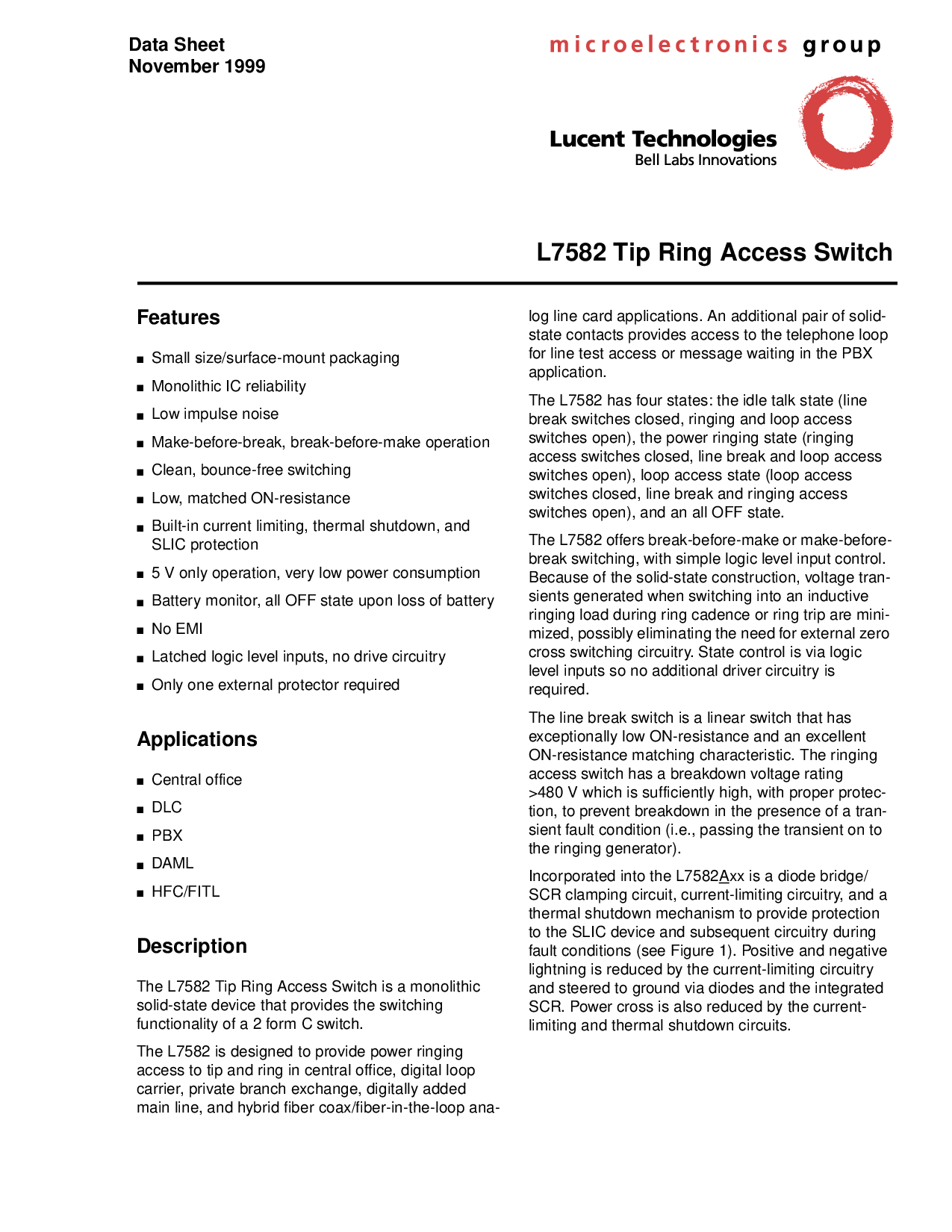这 l7582 小费 戒指 访问权限 开关 是 一个 单片
