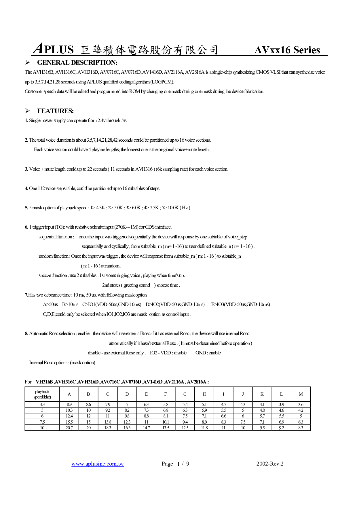 这 avh316b, avh316c, avh316d, av0716c, av0716d, av1416d, av2116a, av2816a 是 一个 单独-c髋关节 合成 cmos vlsi 那 可以 synthesize 语音