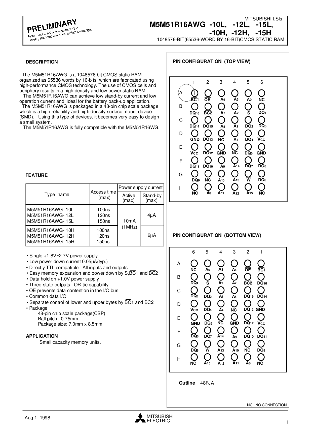 浏览型号M5M51R16AWG-15L的Datasheet PDF文件第2页