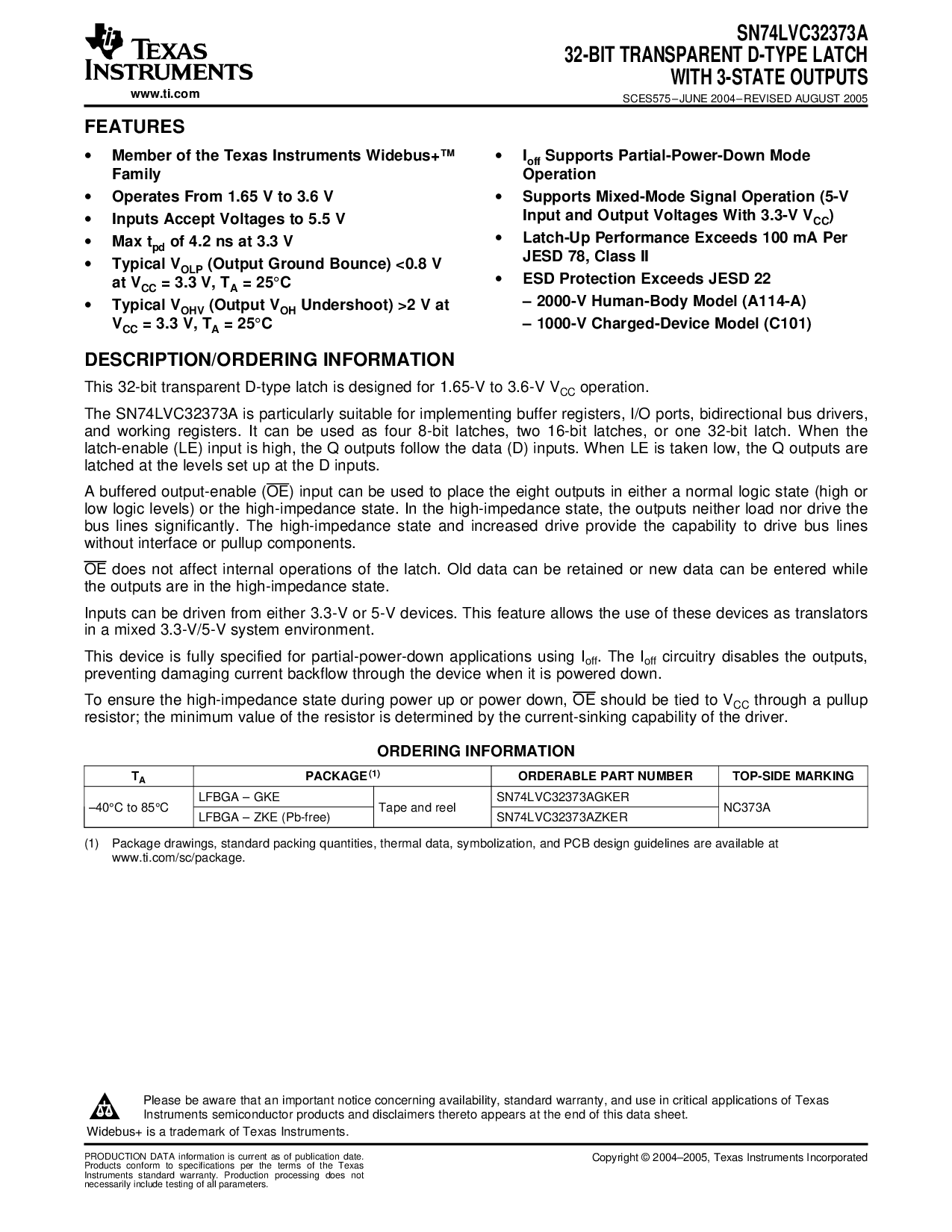 lfbga–zke(铅-免费)sn74lvc32373azker