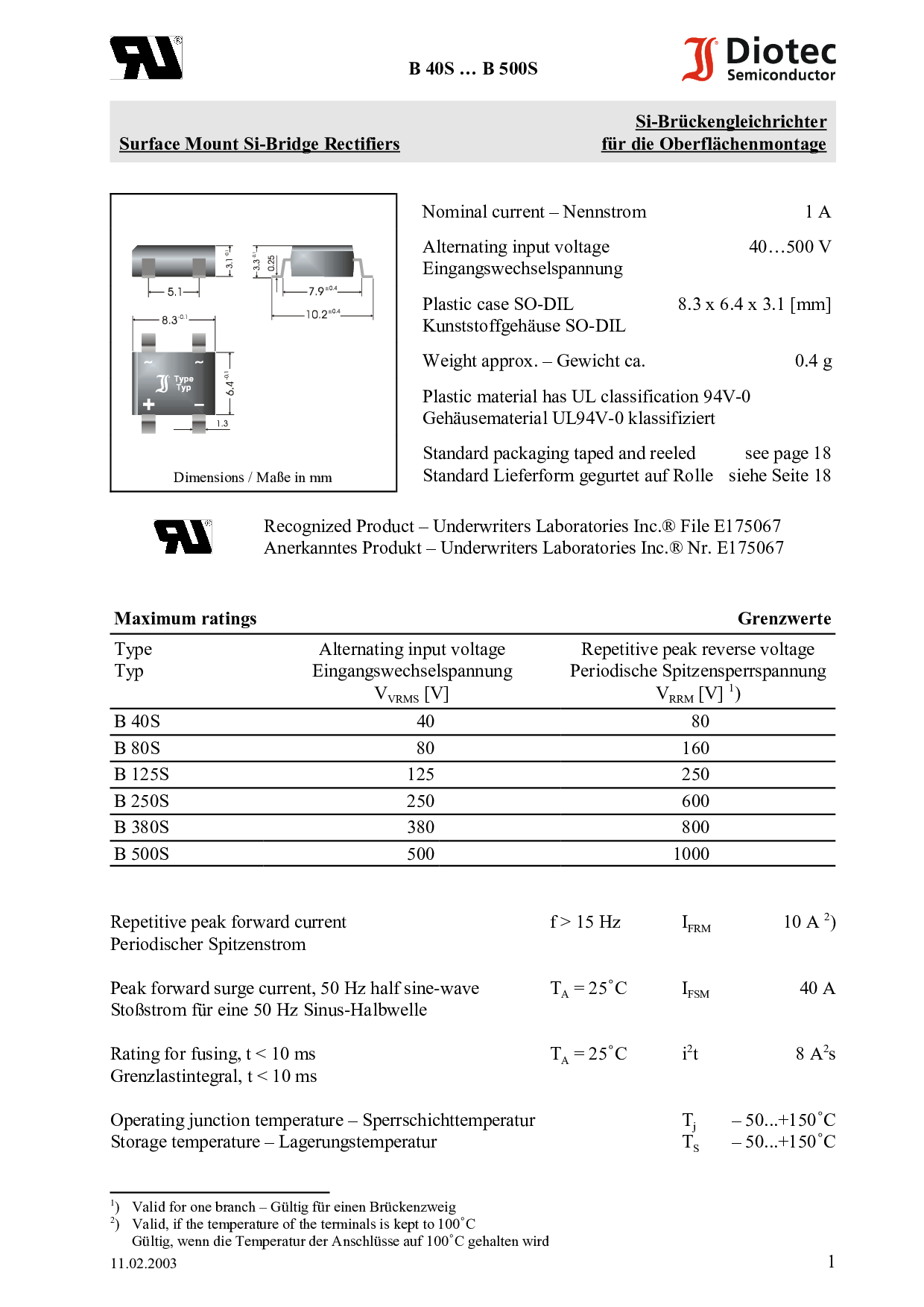表面 安装 si-桥梁 整流器 für 模具 oberflächenmontage