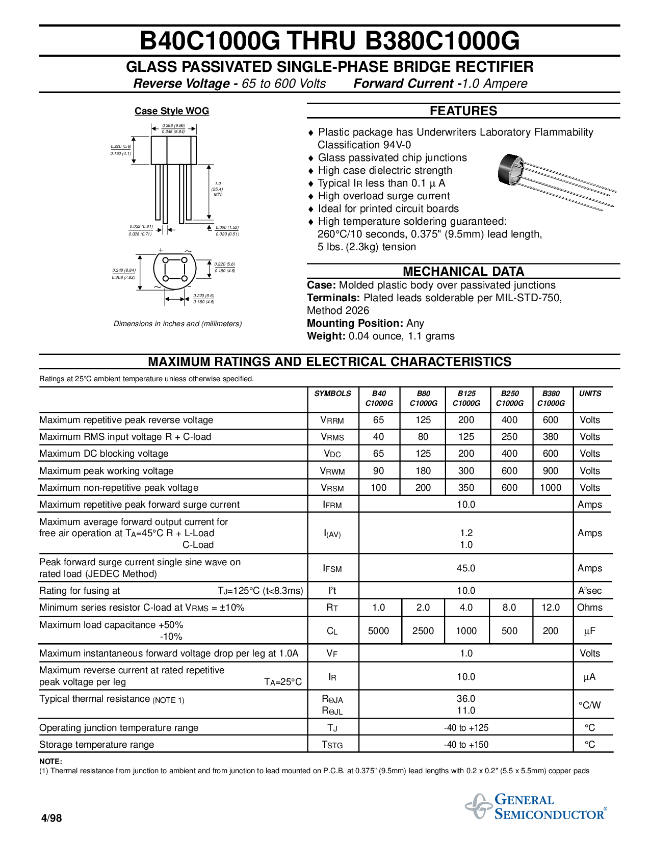 (1) 热 电阻 从 接合点 至 环境 和 从 接合点 至 铅 已安装 开启 p.c.b. 在 0.375" (9.5mm) 铅 长度 与 0.2 x 0.2" (5.5 x 5.5mm) 铜 衬垫
