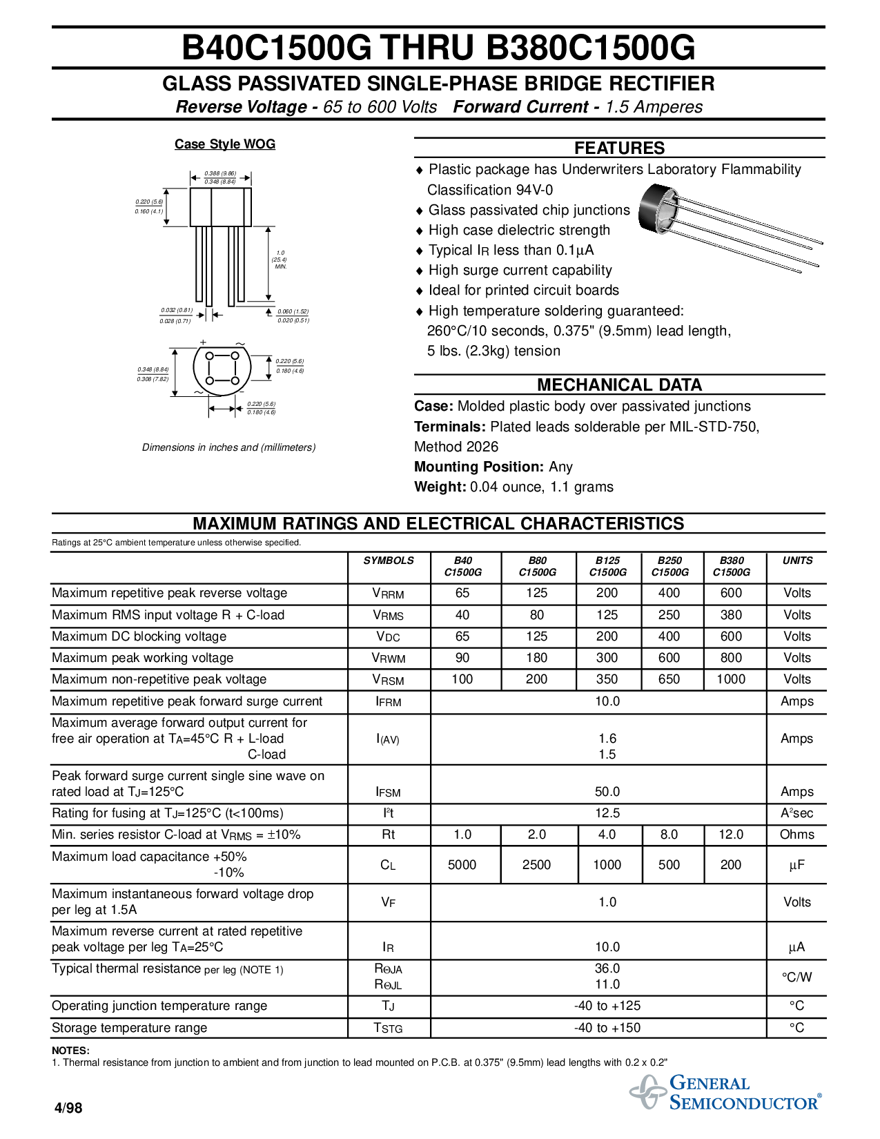1. 热 电阻 从 接合点 至 环境 和 从 接合点 至 铅 已安装 开启 p.c.b. 在 0.375" (9.5mm) 铅 长度 与 0.2 x 0.2"