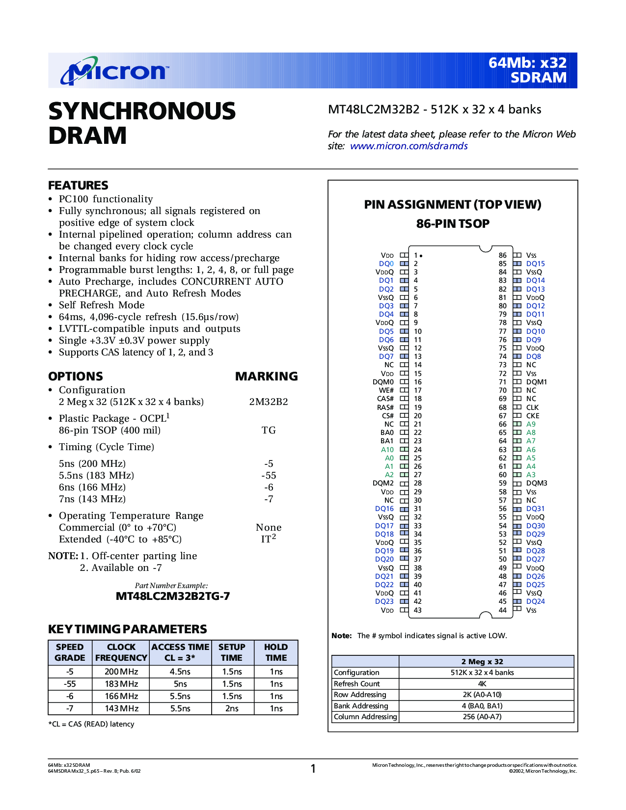 浏览型号MT48LC2M32B2TG的Datasheet PDF文件第2页