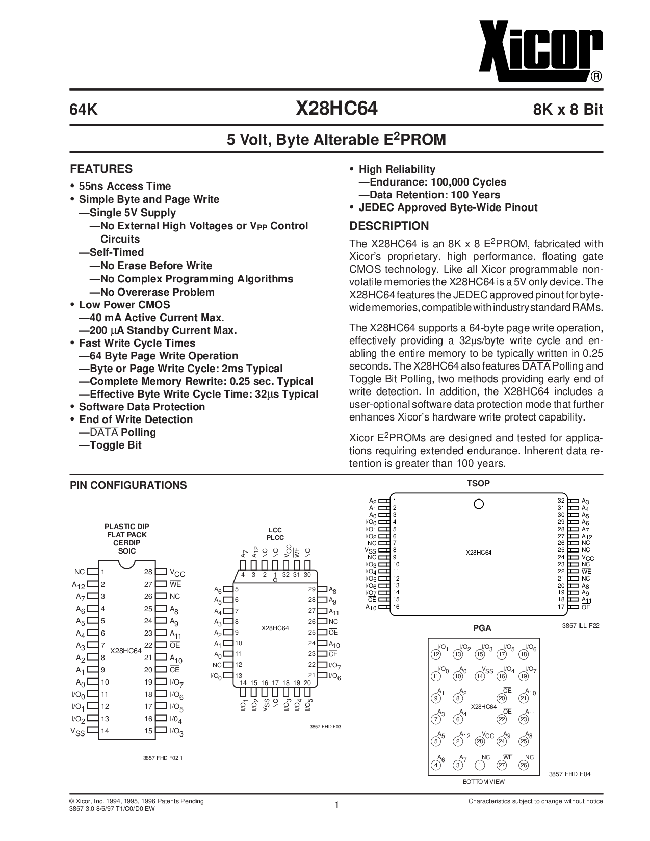 © xicor, 公司 1994, 1995, 1996 专利 待定 特性 主题 至 变更 无 通知